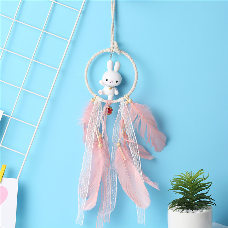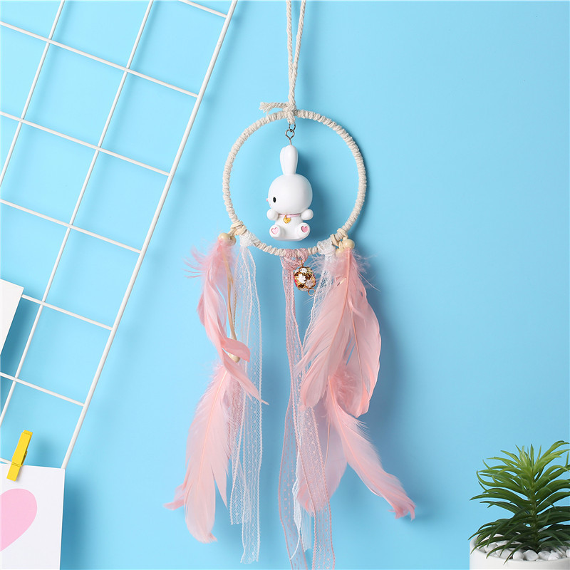 七夕礼物挂饰室内风铃装饰品网红慕斯兔捕梦网风铃带灯送闺蜜礼物