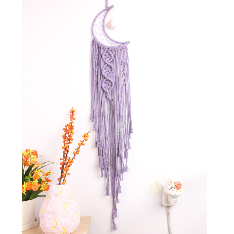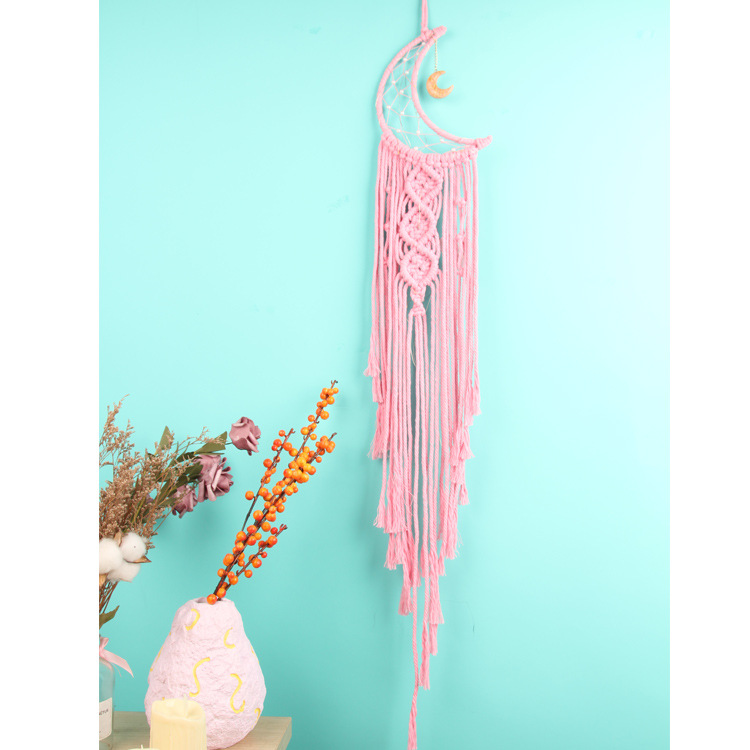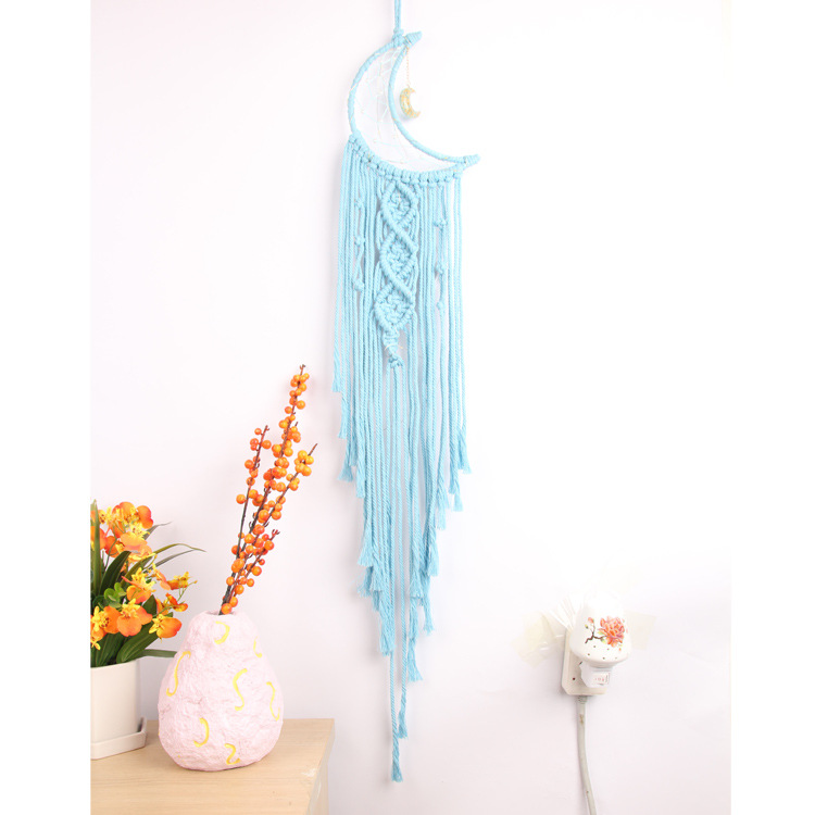 跨境新品月亮捕梦网挂毯 欧美新款五角星羽毛捕梦网风铃家居装饰