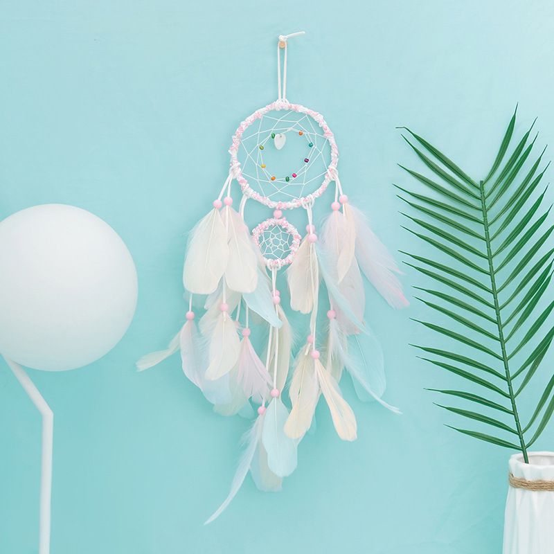 捕梦网吊饰粉红少女心羽毛挂饰创意房间卧室装饰品情人节生日礼物