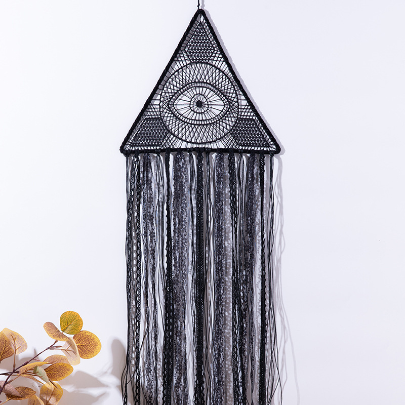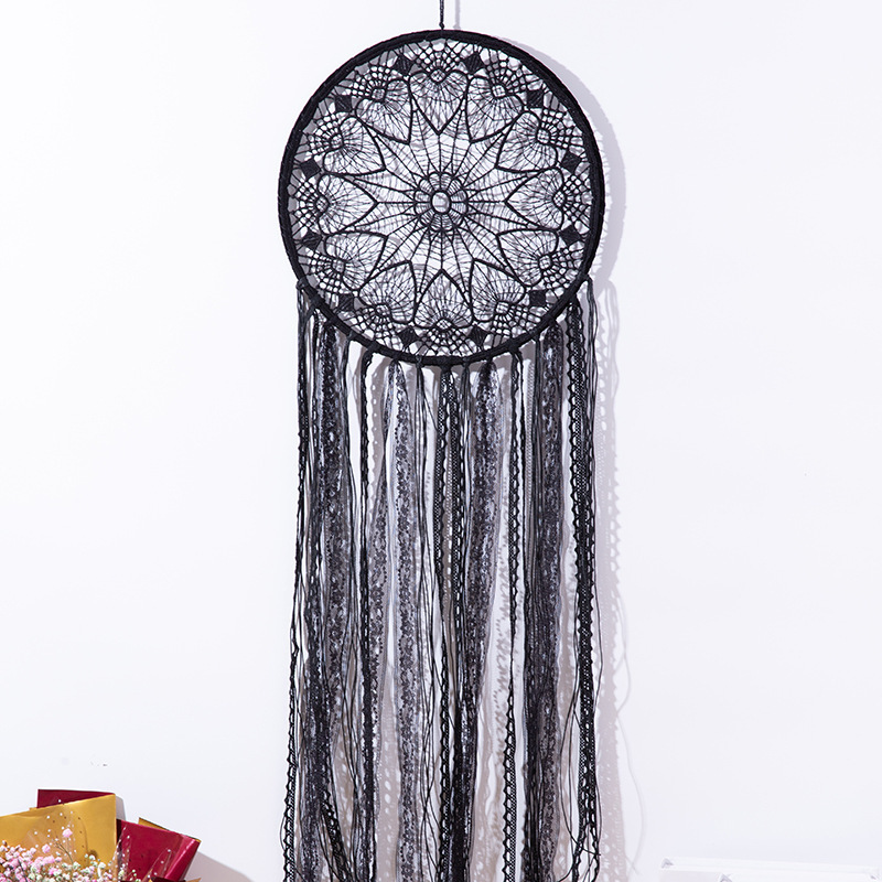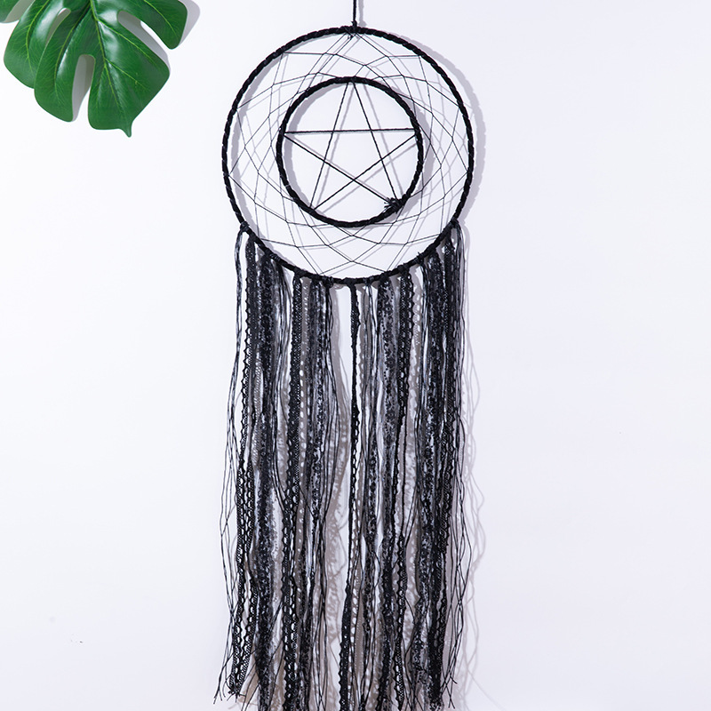 2021印第安黑色蕾丝三角形圆形捕梦网跨境热卖流苏风铃挂饰墙壁饰