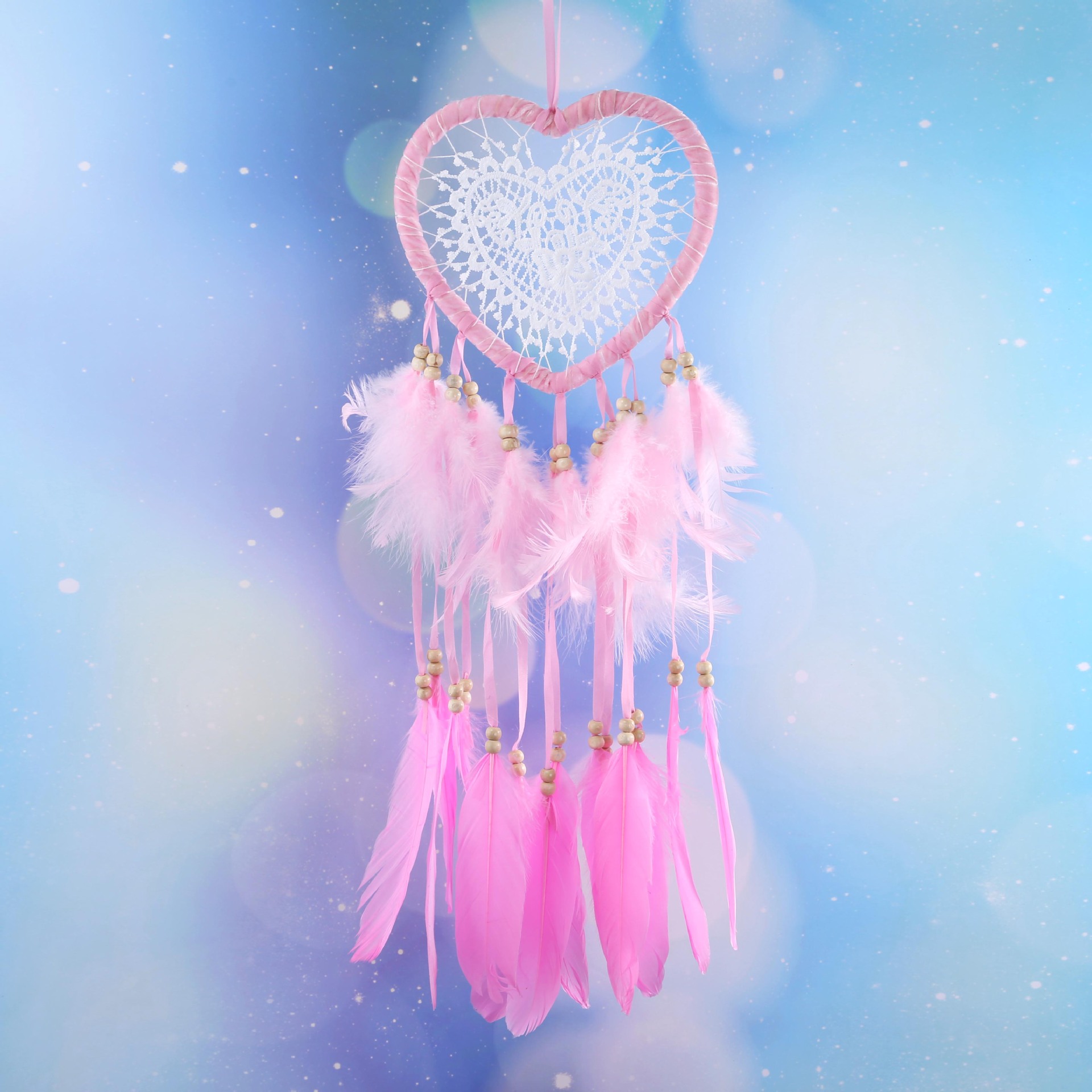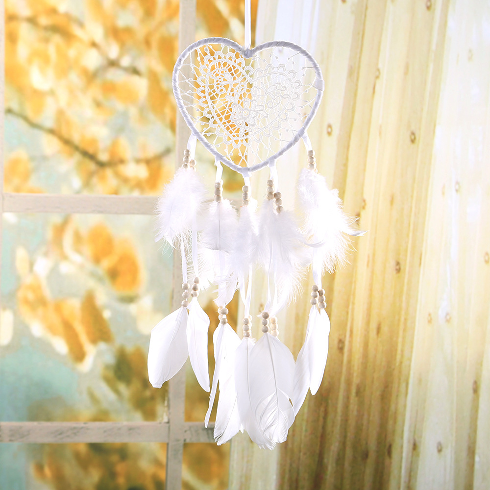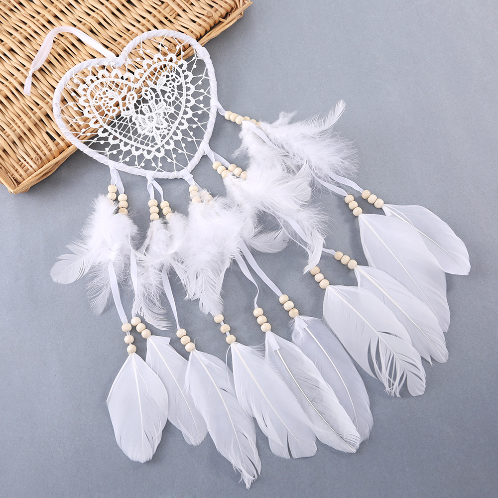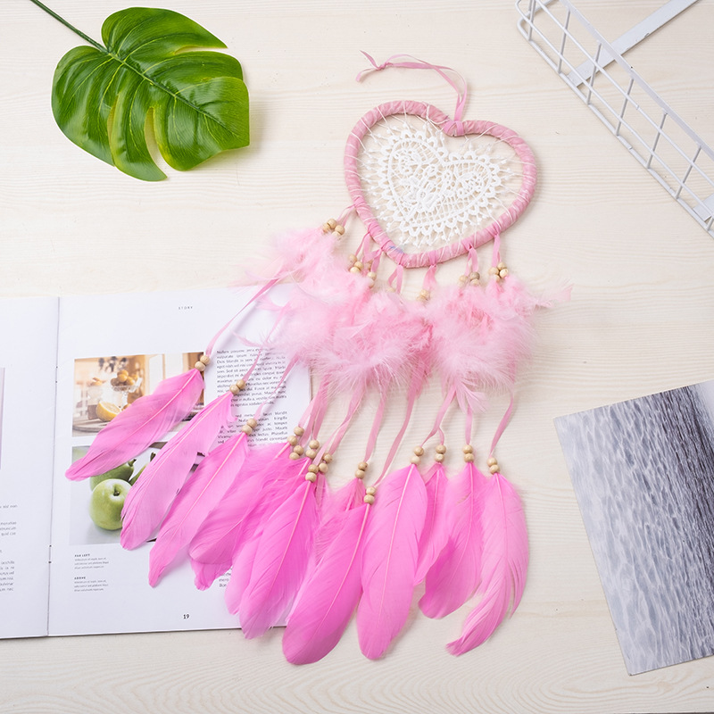 新款桃心捕梦网房间挂饰爱心蕾丝镂空羽毛捕梦网壁挂手工家居壁饰