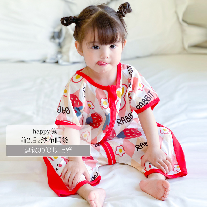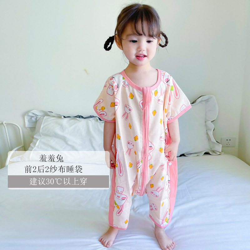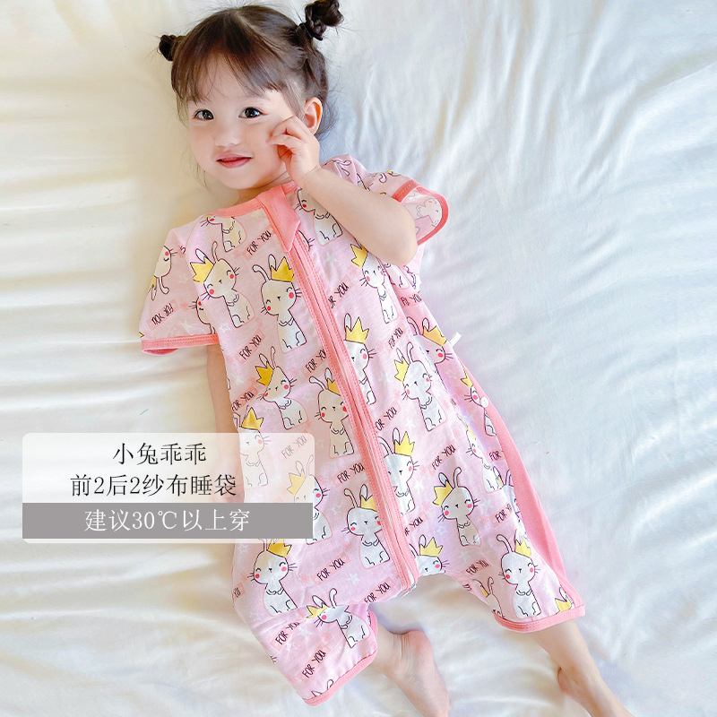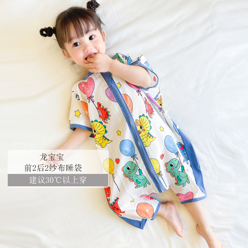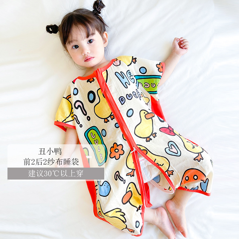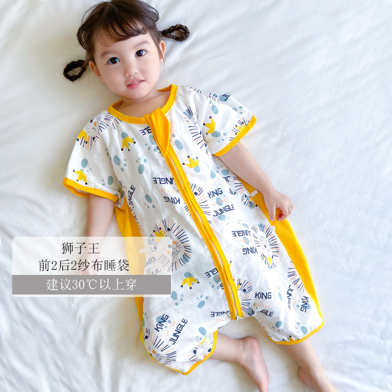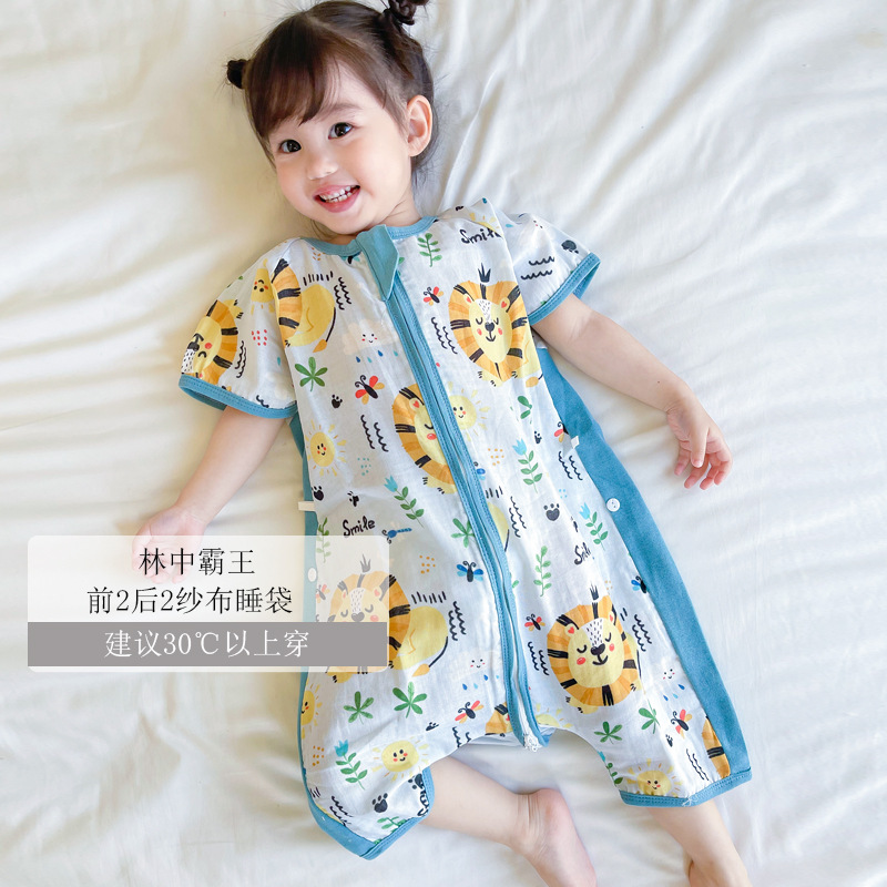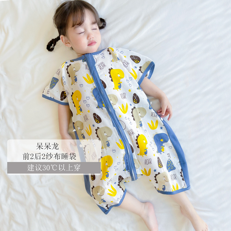 超人豆豆春夏薄款婴儿纱布睡袋宝宝短袖分腿防踢被中大童四季通用
