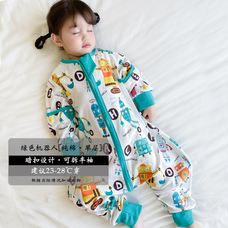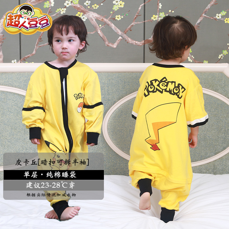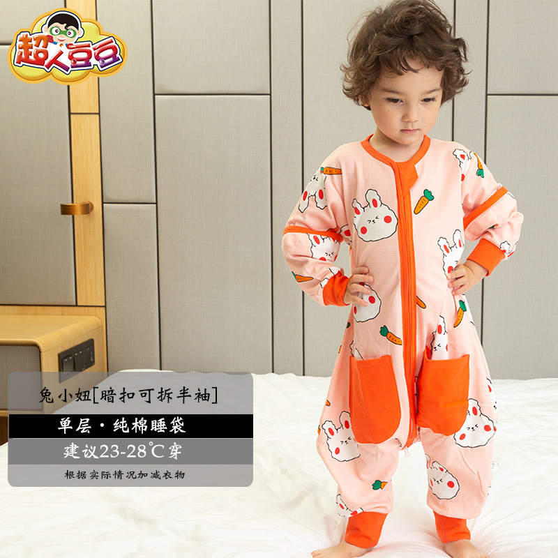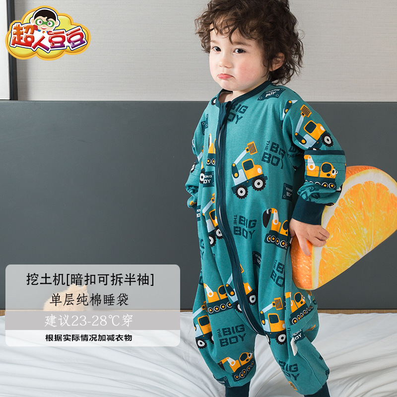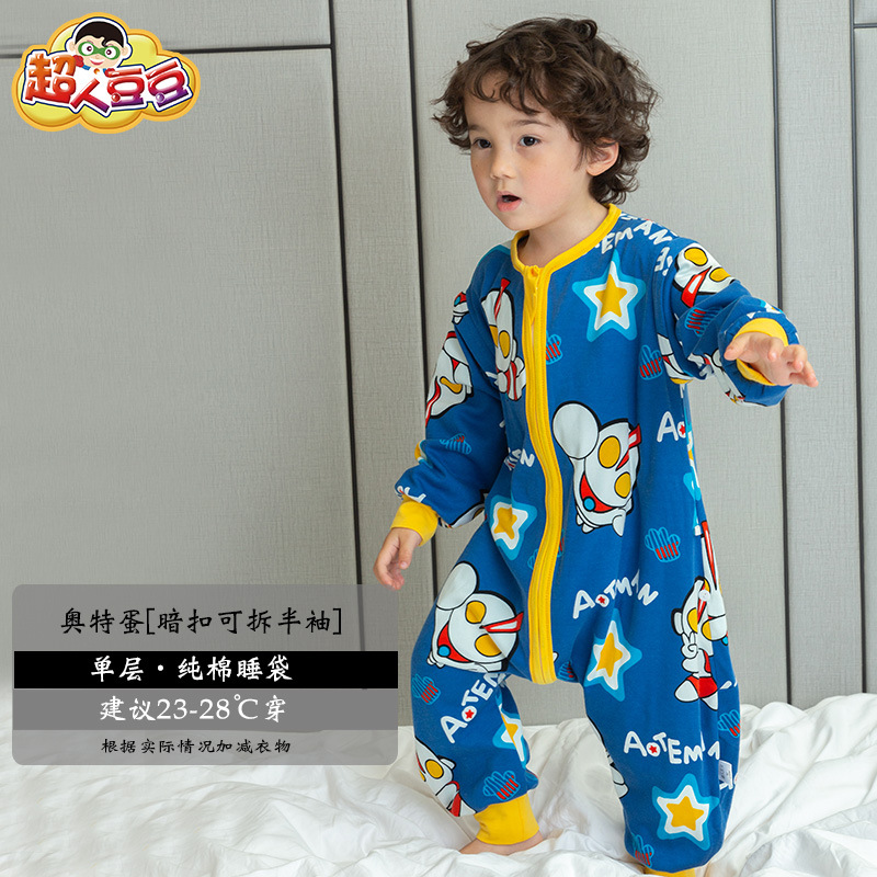 超人豆豆婴儿分腿睡袋夏季薄款可拆袖宝宝春夏儿童防踢被四季通用