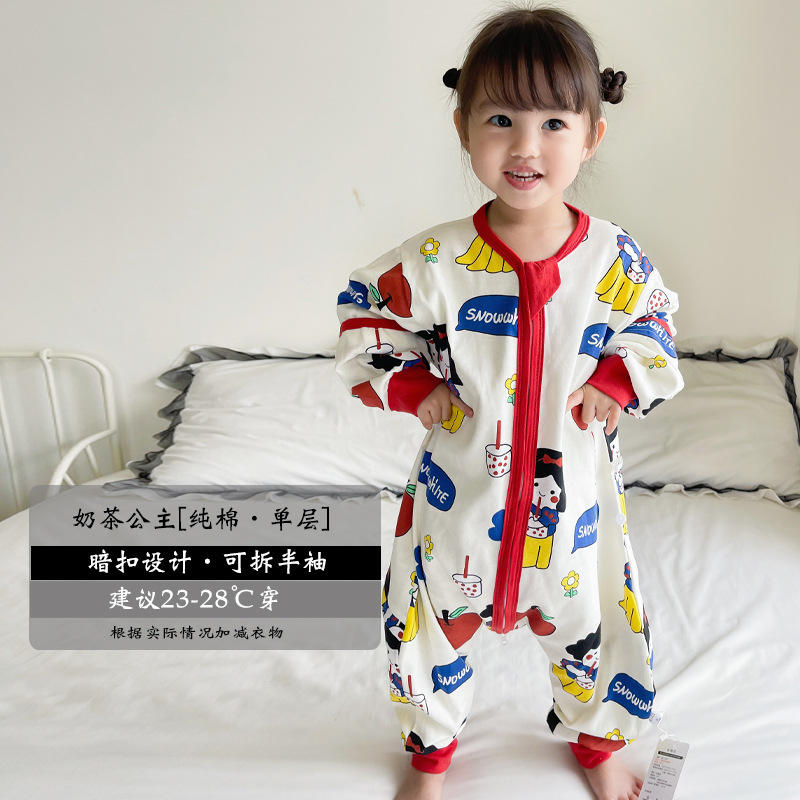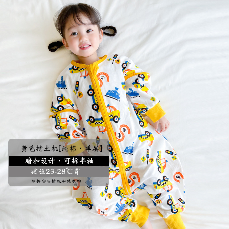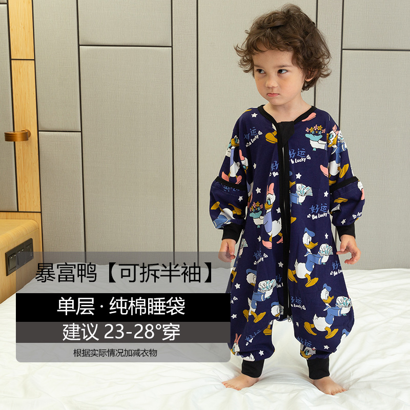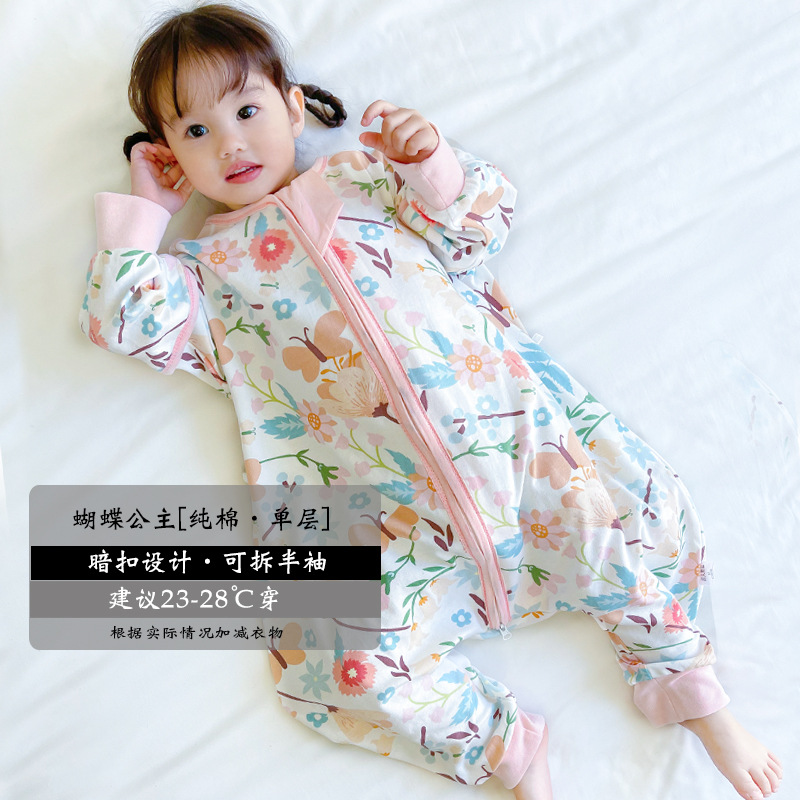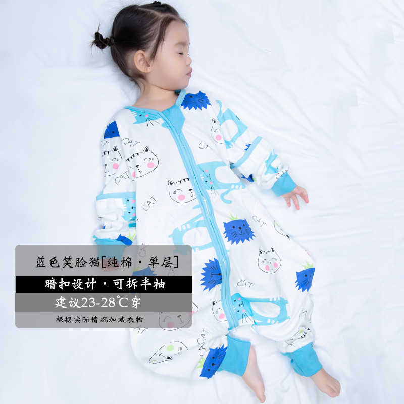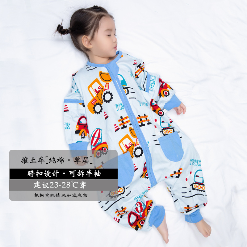 超人豆豆婴儿分腿睡袋夏季薄款可拆袖宝宝春夏儿童防踢被四季通用