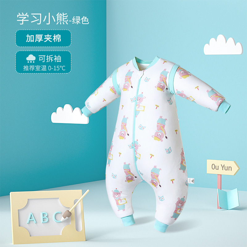 欧孕宝宝睡袋婴儿春秋薄款纯棉宝宝秋冬分腿儿童防踢被四季通用款