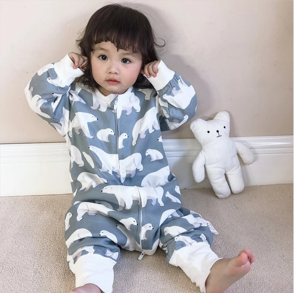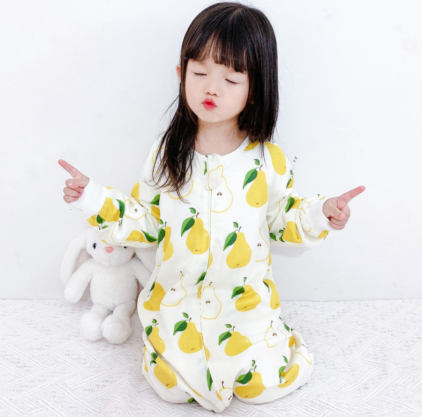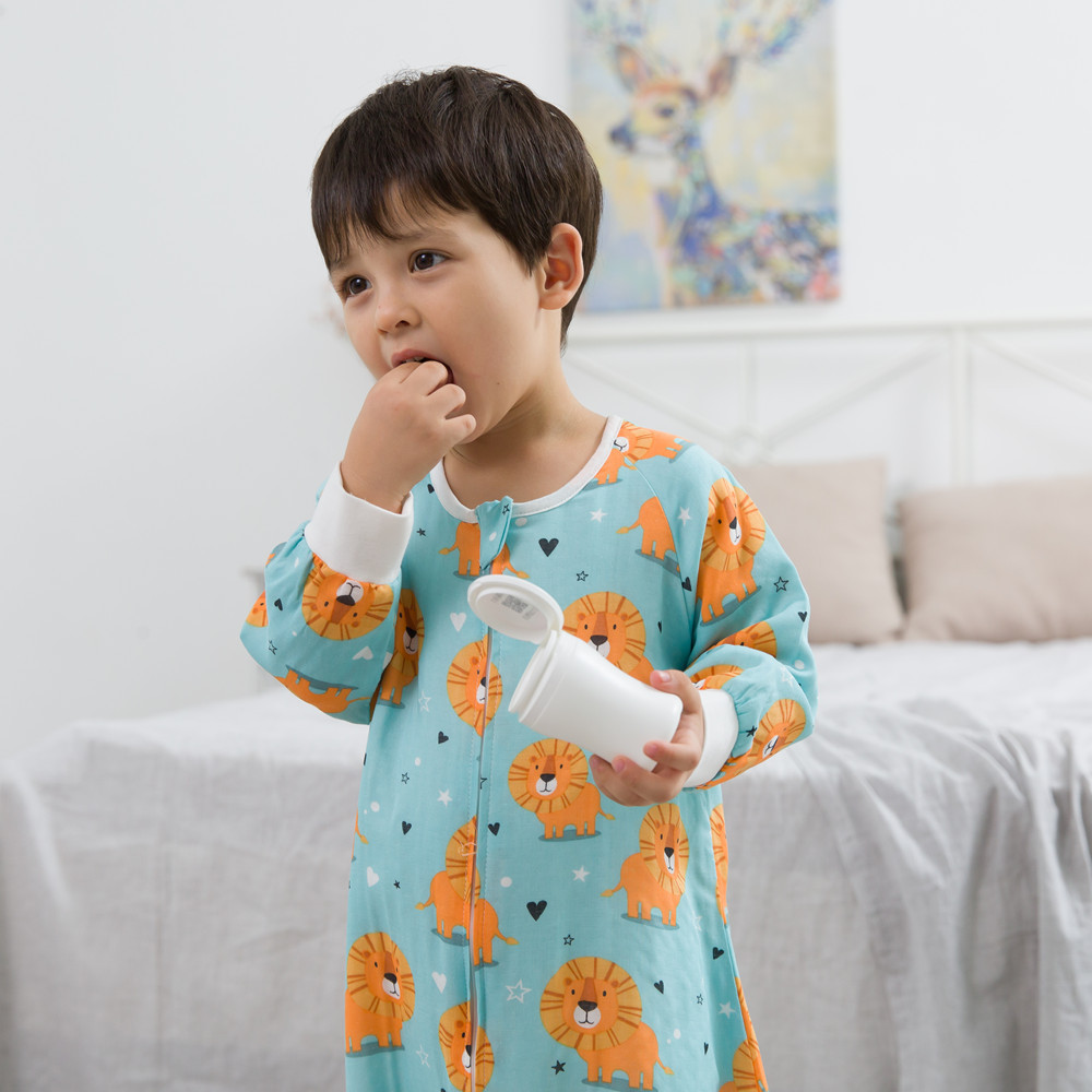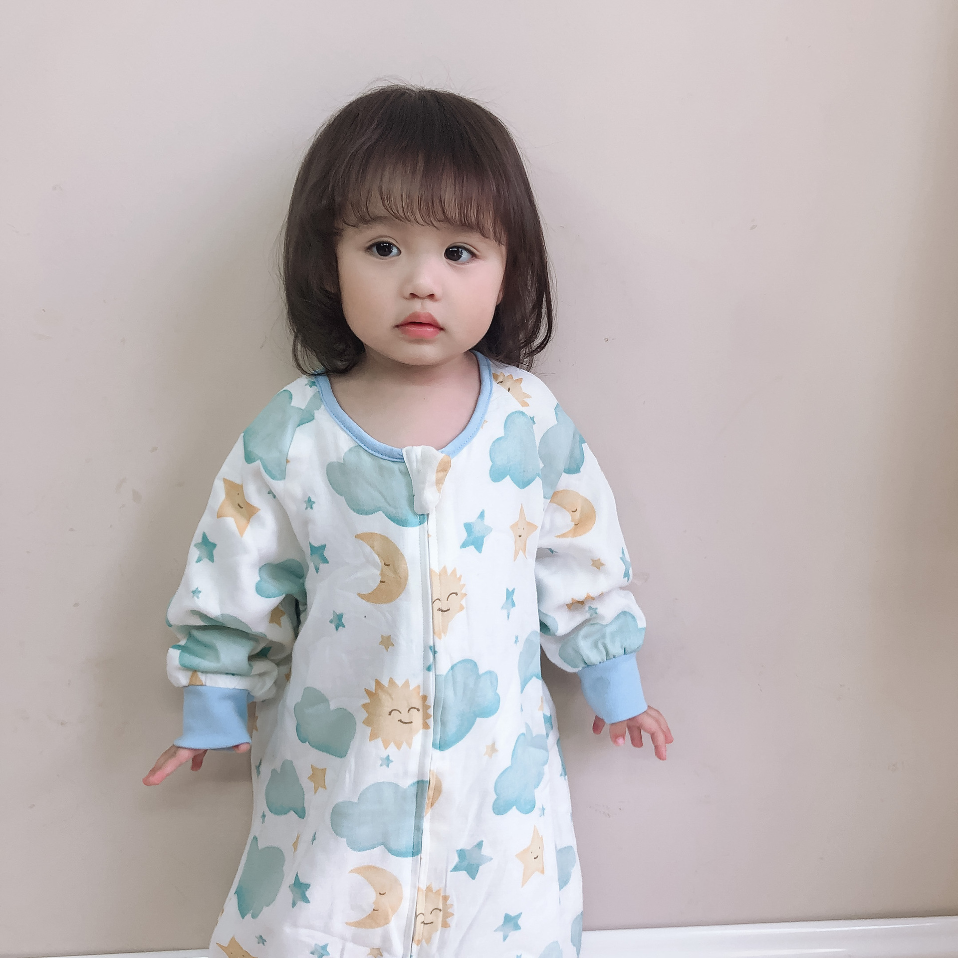 四季竹棉双层纱布长袖分腿睡袋婴幼儿防踢连体衣 儿童睡袋