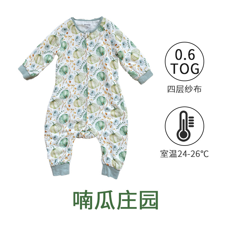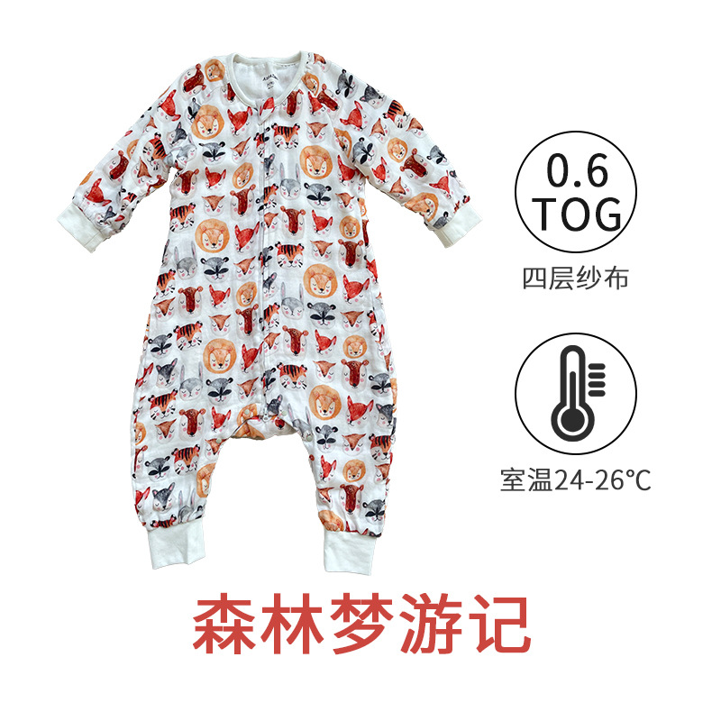 安旦春夏新款婴儿睡袋宝宝分腿四层竹棉纱布睡袋春秋季幼儿童防踢