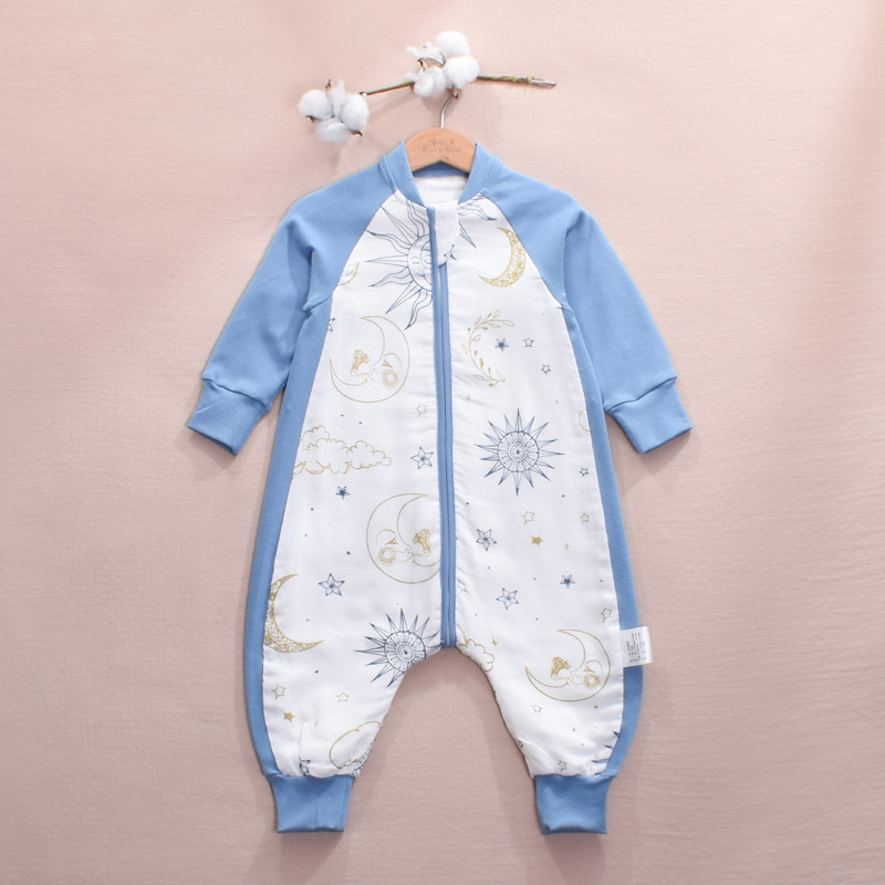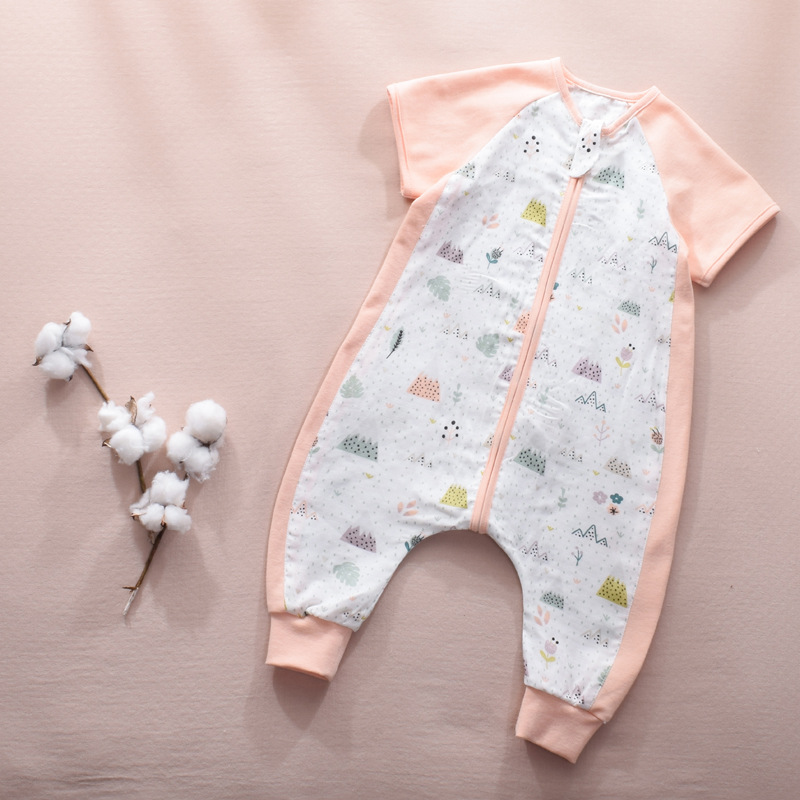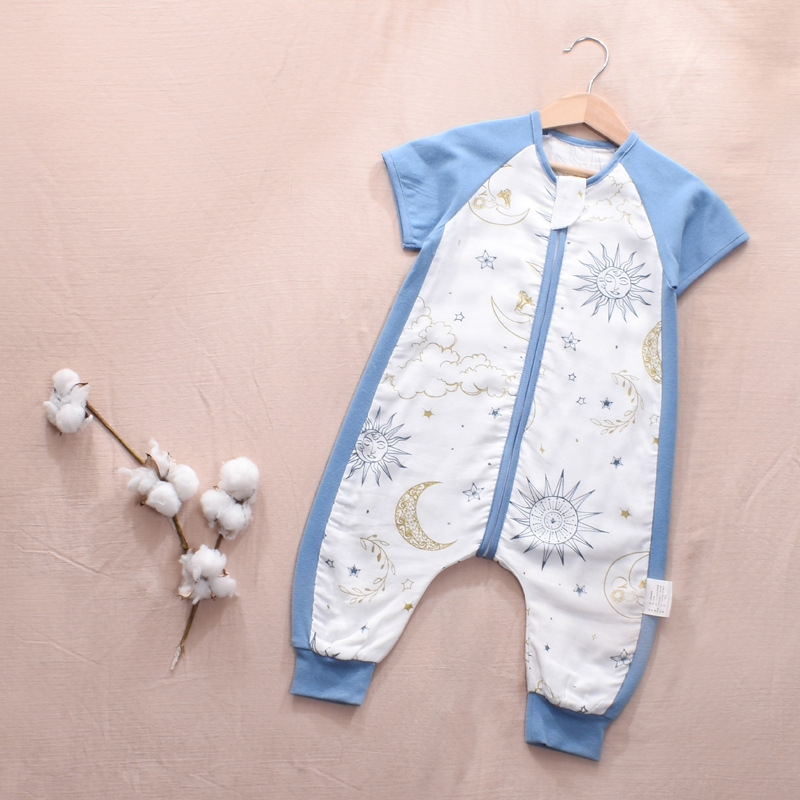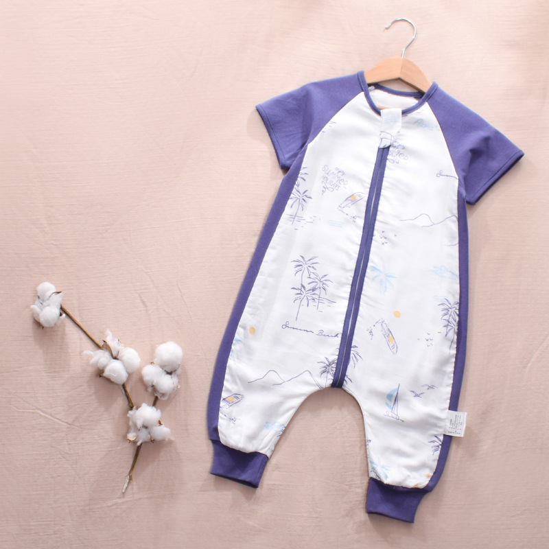 婴儿睡袋短袖长袖纱布睡袋儿童纱布拼接分腿睡袋宝宝防踢被