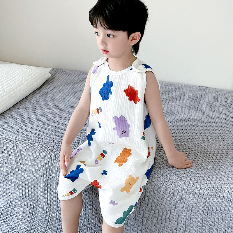 宝宝睡袋纯棉纱布无袖背心式新生儿童睡觉防踢被婴儿护肚子神器薄