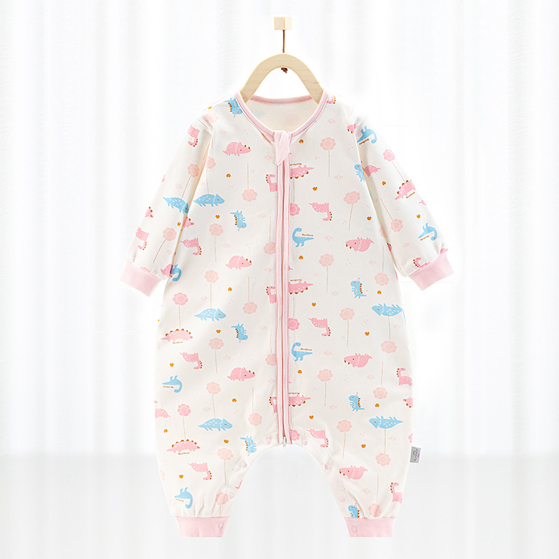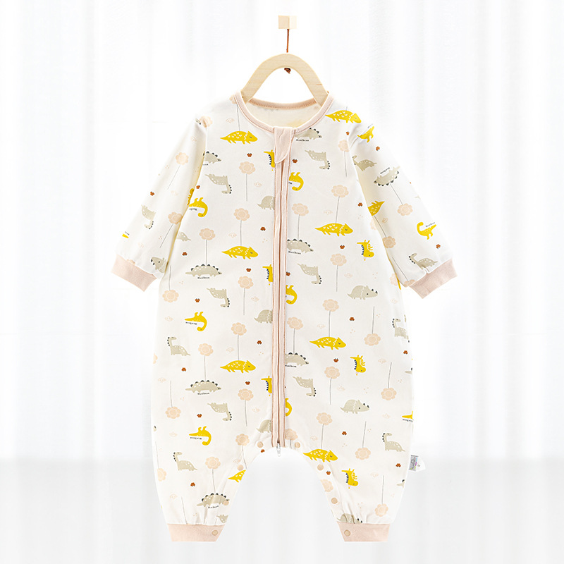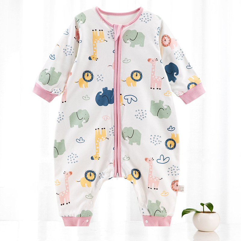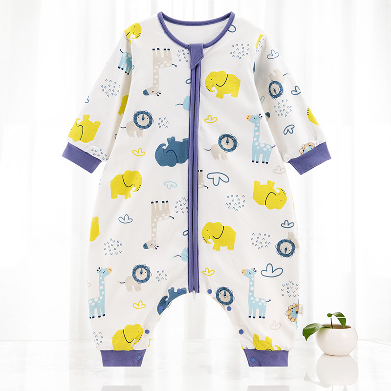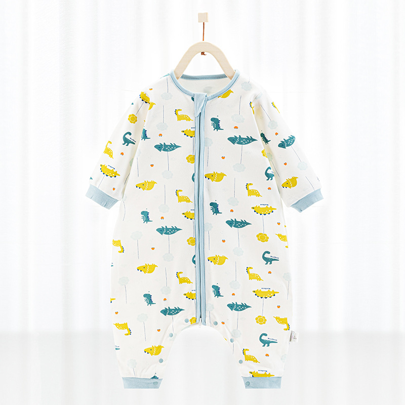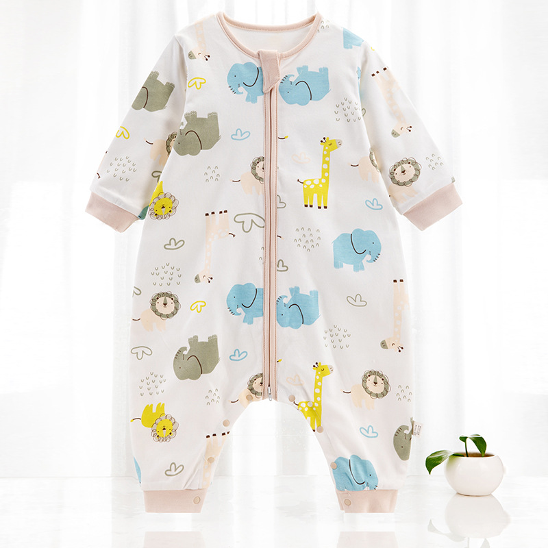 欢喜小熊婴儿分腿睡袋春秋薄款宝宝双层纯棉防踢被空调房四季通用