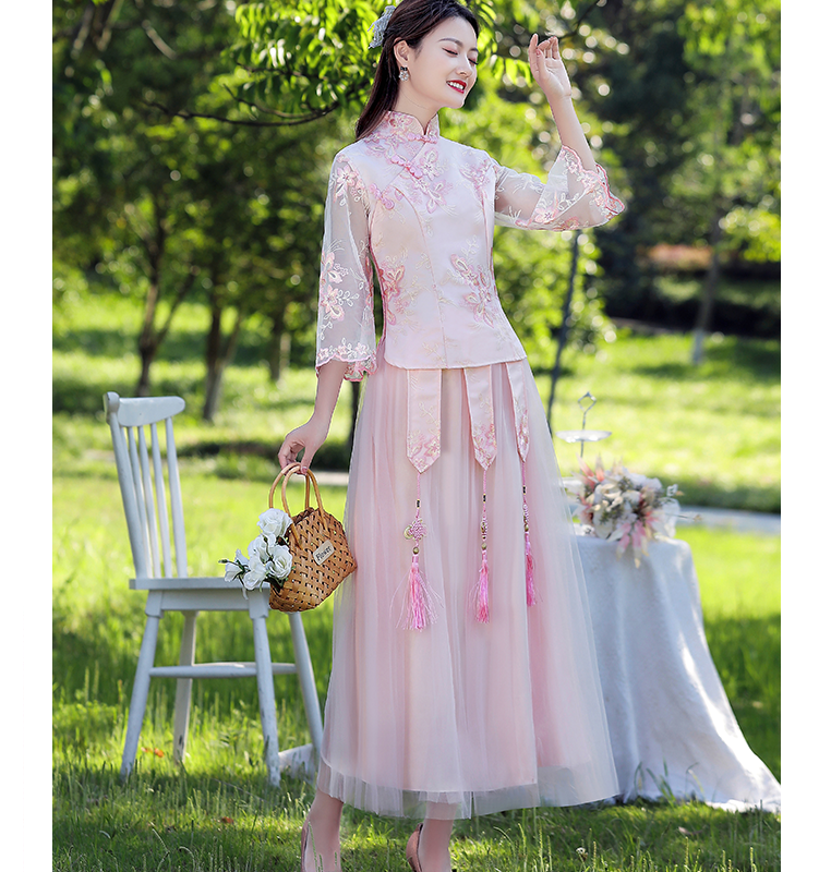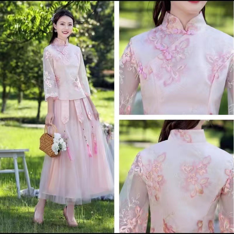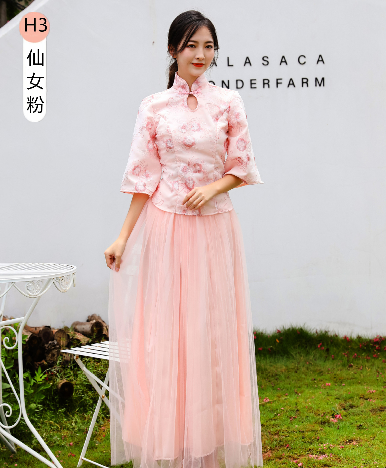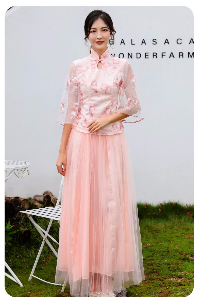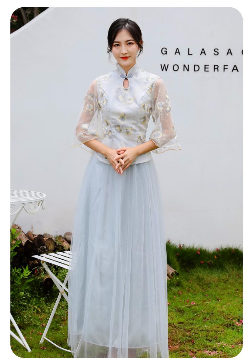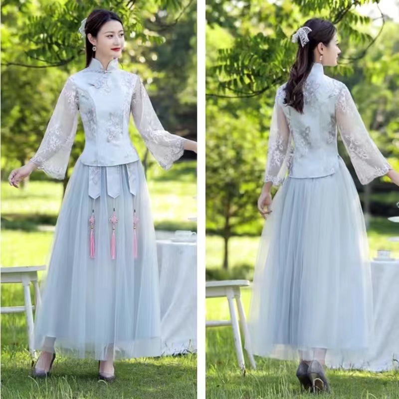 2021秋新款伴娘礼服中式优雅气质成人礼女学生毕业演出合唱中国风