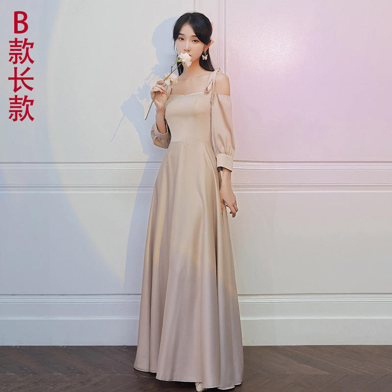 伴娘服2022新款春季仙气姐妹团裙平时可穿大码缎面毕业宴会晚礼服