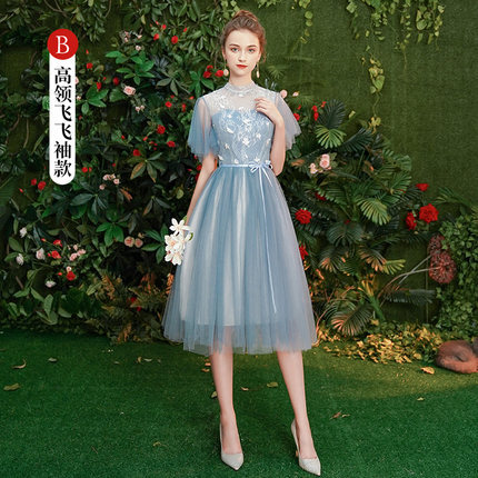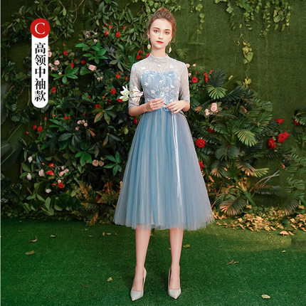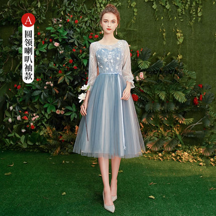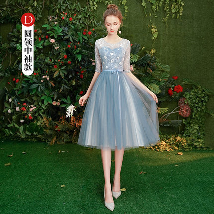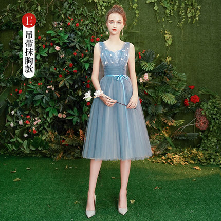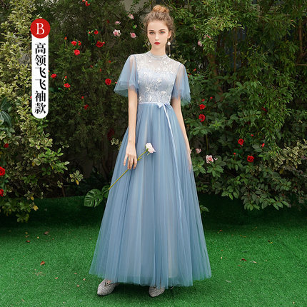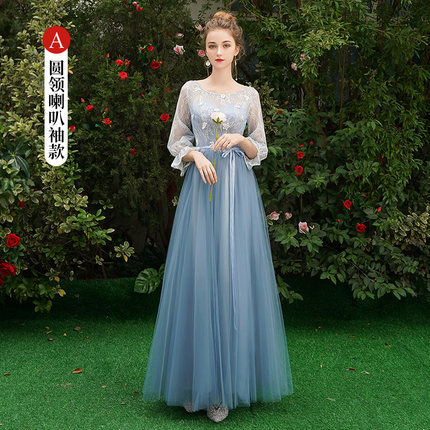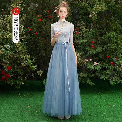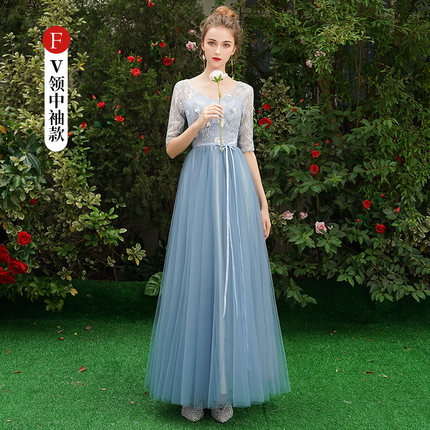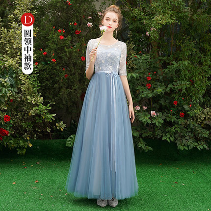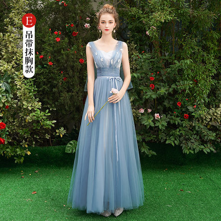 蓝色伴娘服长款夏季韩版显瘦伴娘团姐妹裙聚会毕业连衣裙
