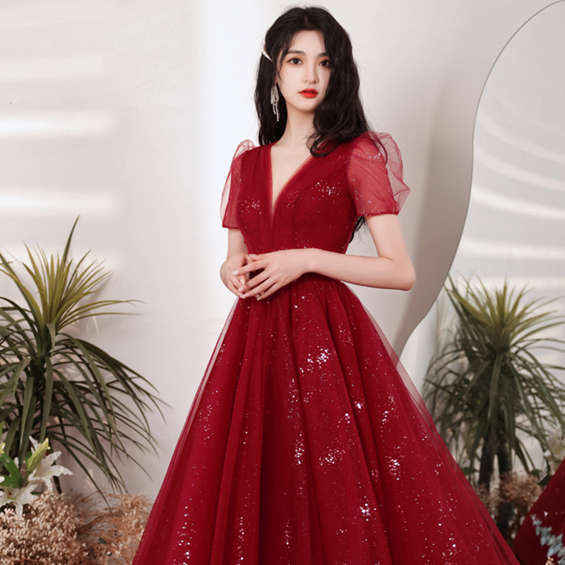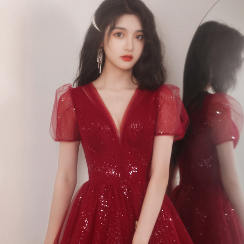 酒红伴娘服2022年四季款平时可穿仙气质遮肉主持毕业礼服女婚礼女