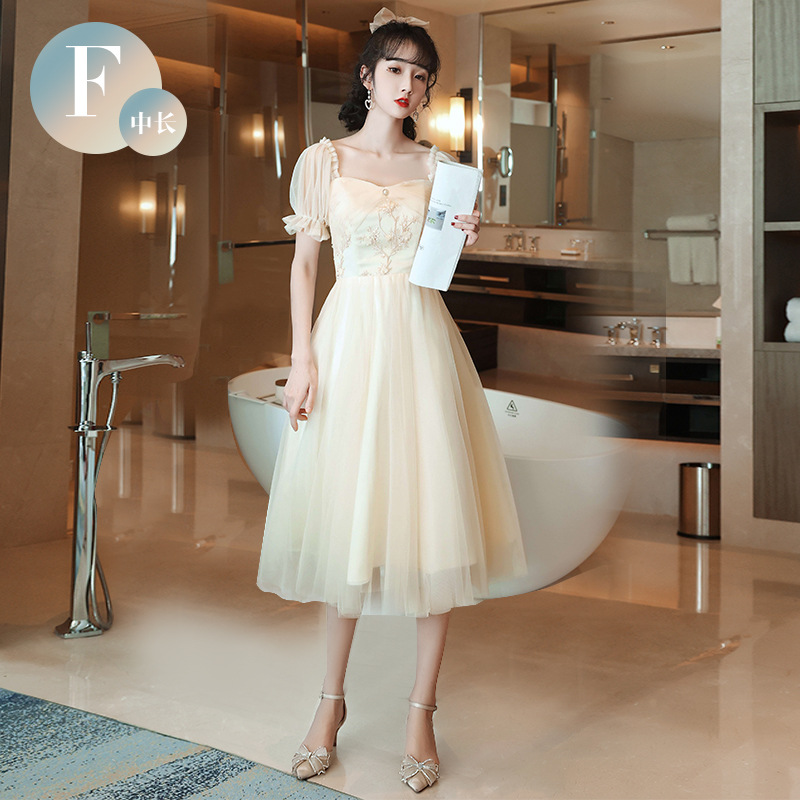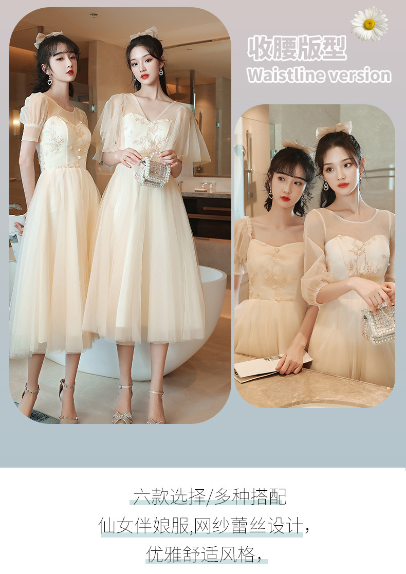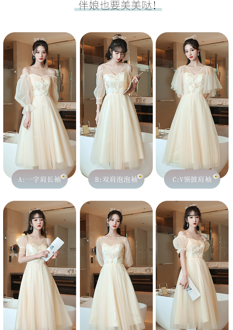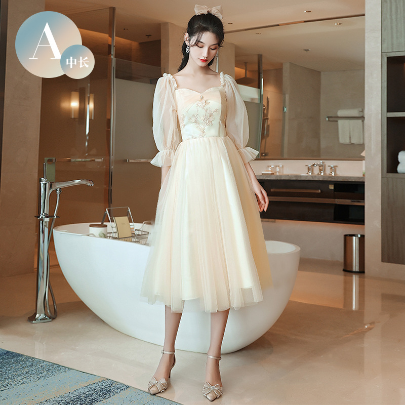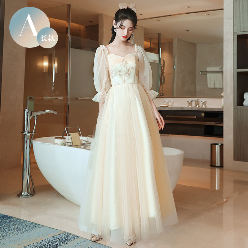 仙气质伴娘服2022秋春季新款姐妹团显瘦毕业礼服中长款伴娘礼服女