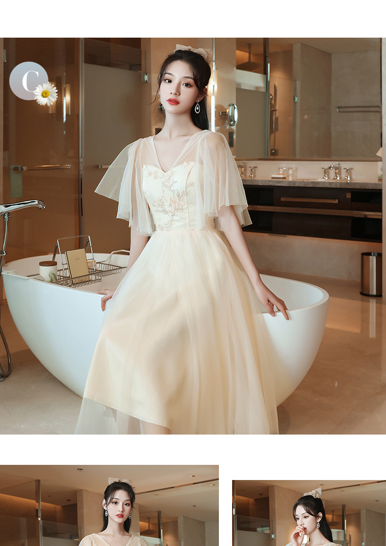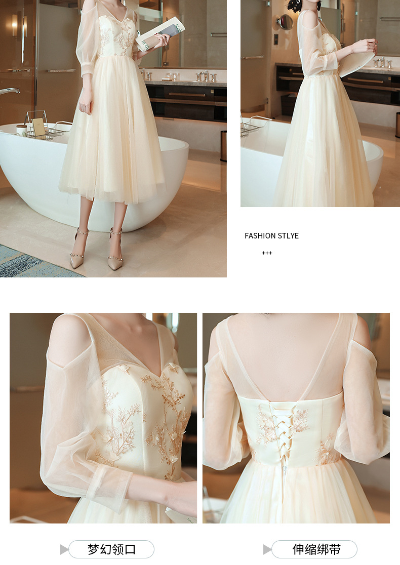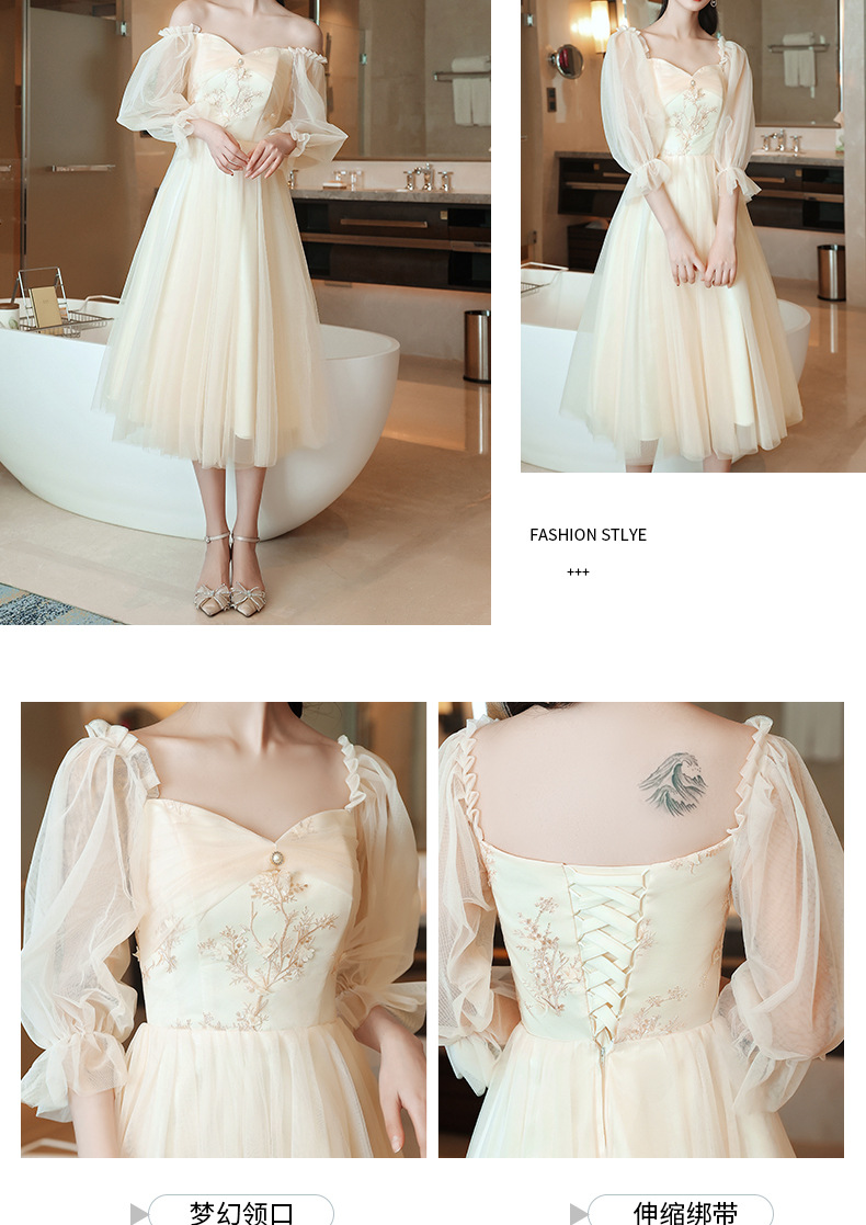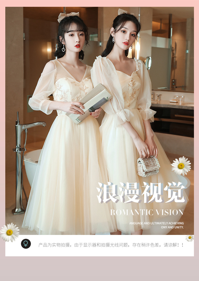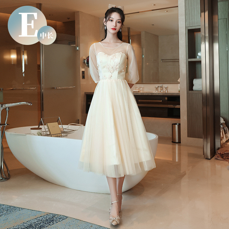 仙气质伴娘服2022秋春季新款姐妹团显瘦毕业礼服中长款伴娘礼服女