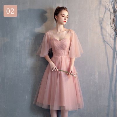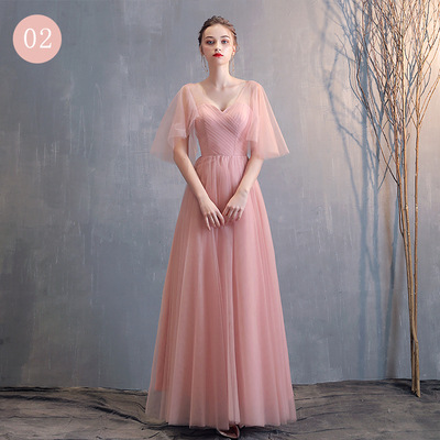 伴娘服中长款2022新款显瘦韩版粉色伴娘团晚礼服毕业主持宴会服女