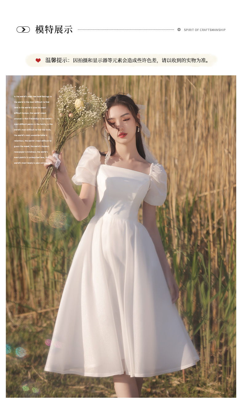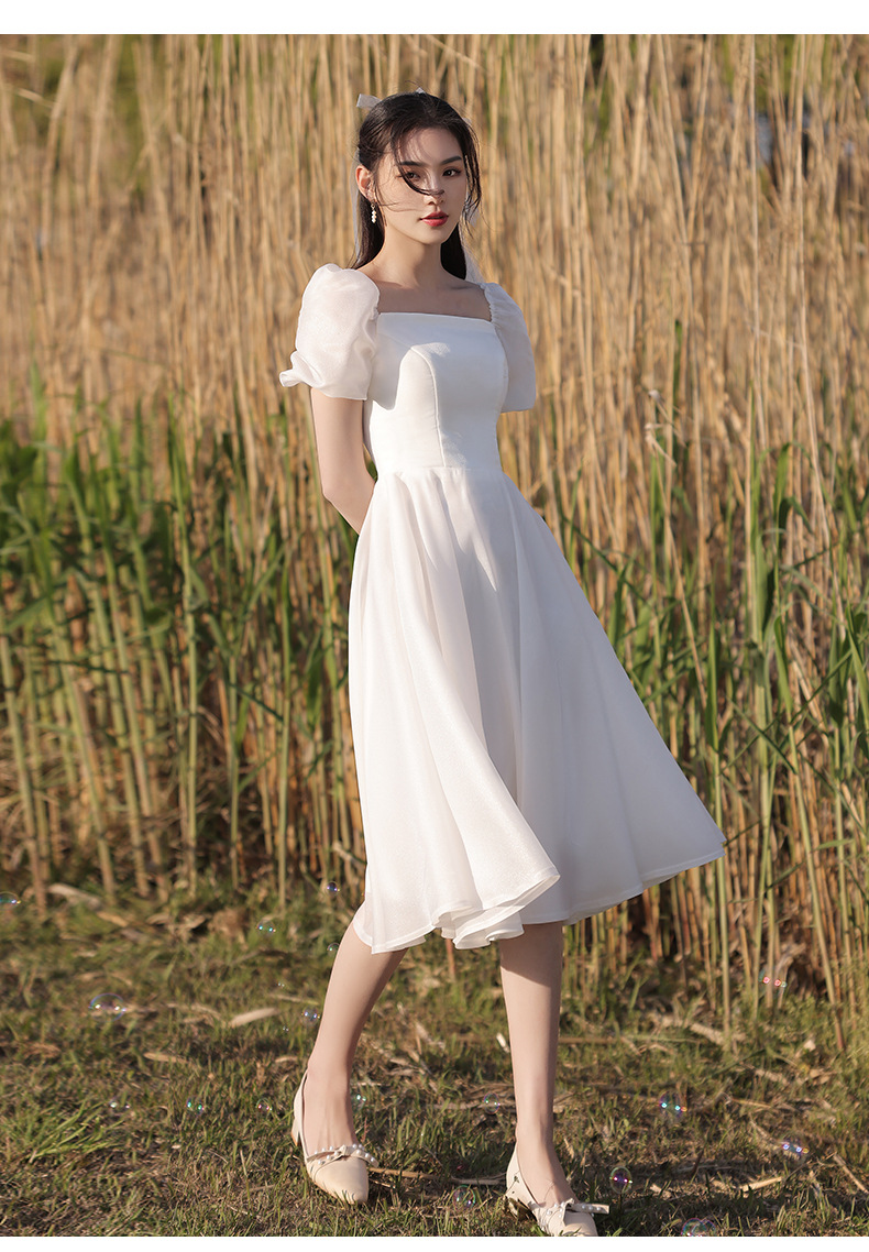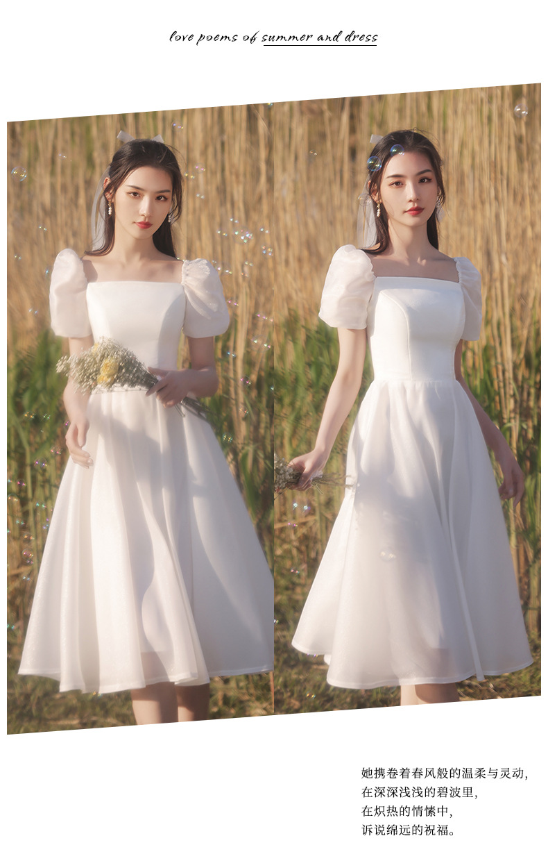 白色小晚礼服女气质宴会学生毕业中长款礼服裙平时可穿夏