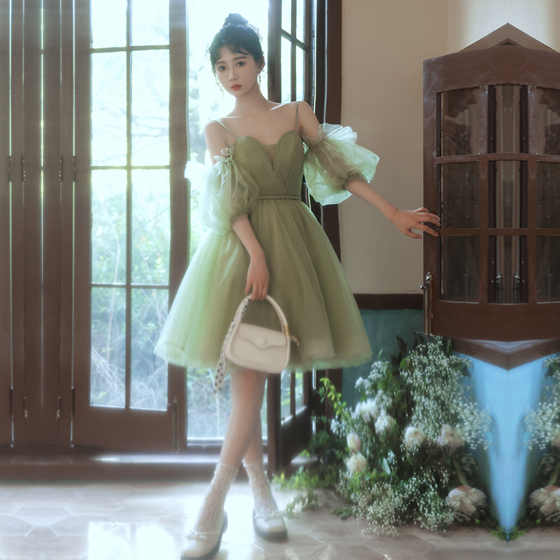 宴会生日晚礼服2022春季新款仙气淡雅毕业短款小礼服实体店货源