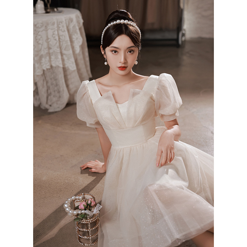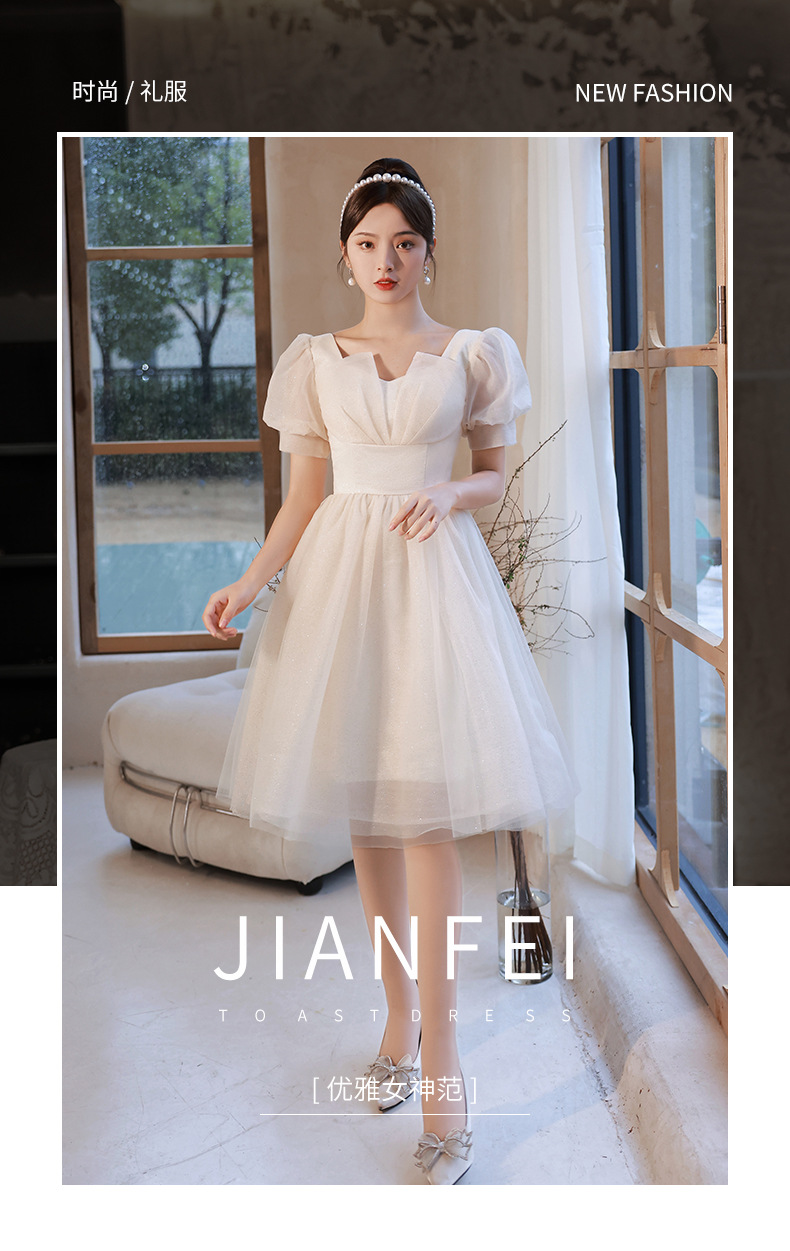 小个子晚礼服女2022春季新品香槟色短款法式仙气毕业礼服