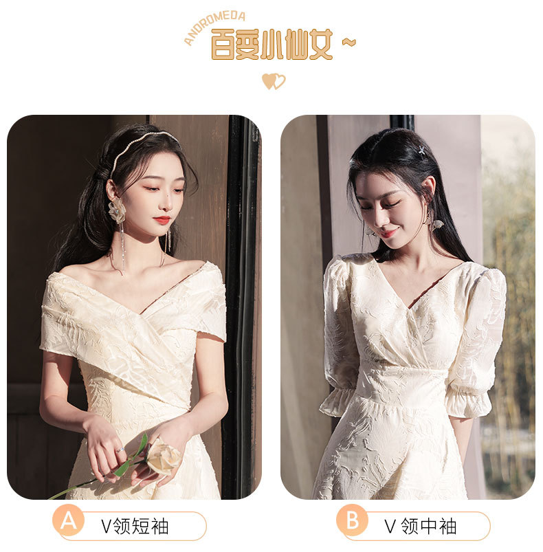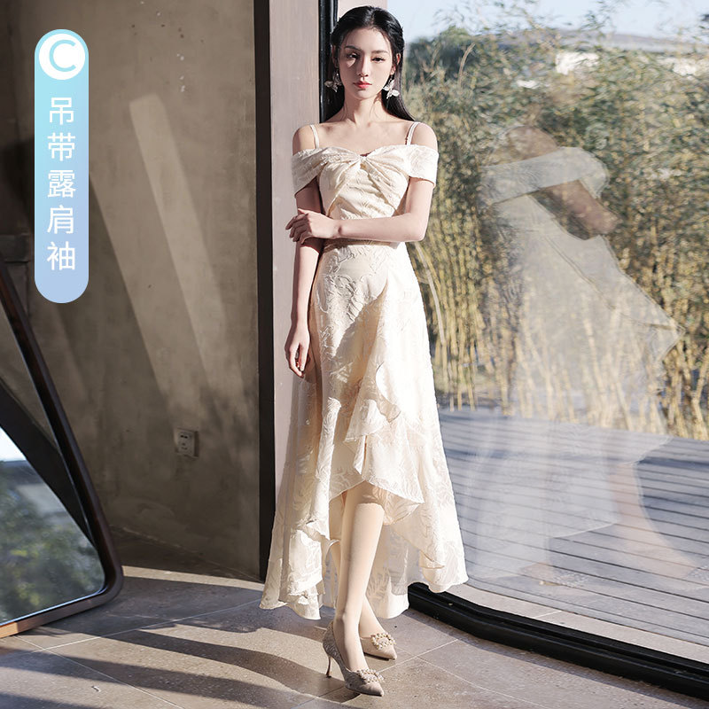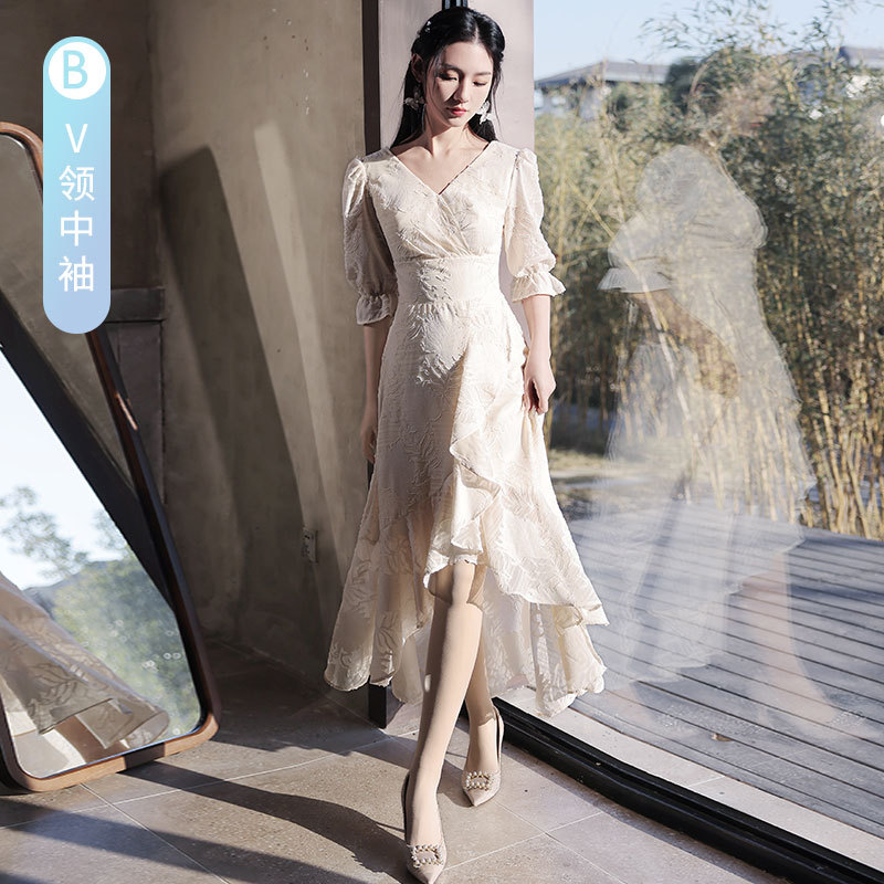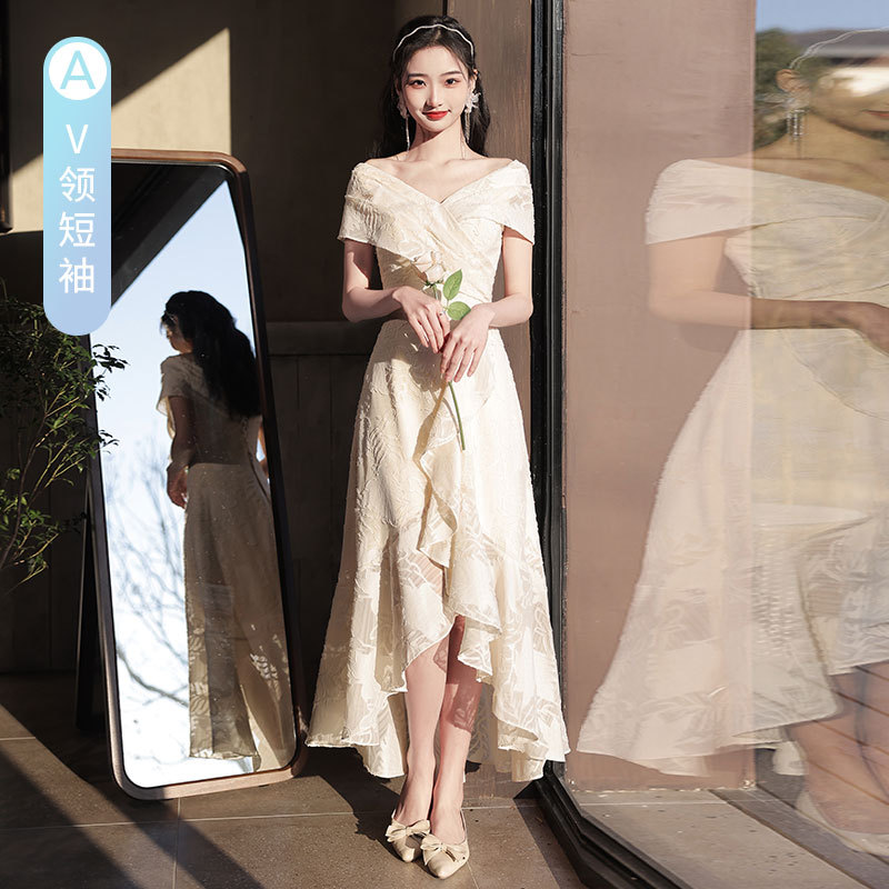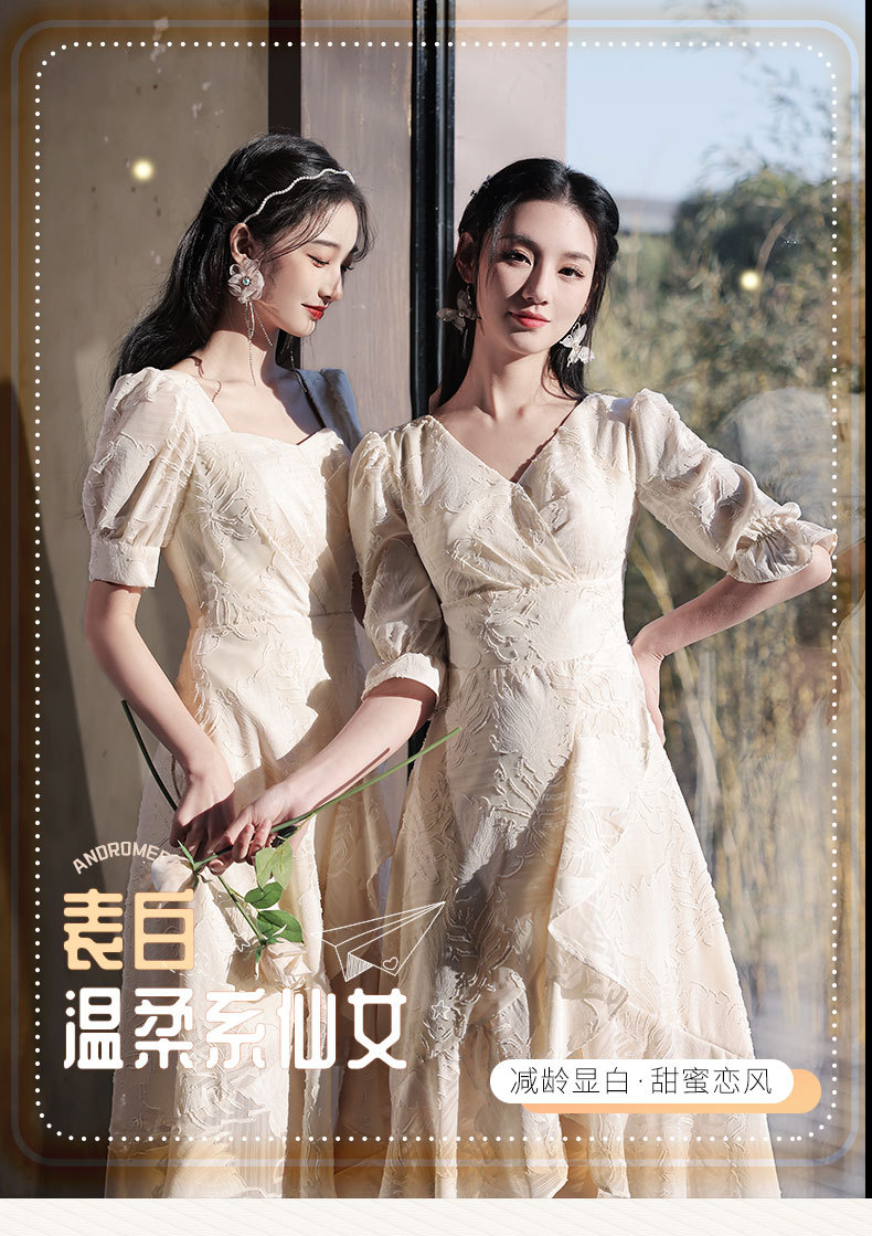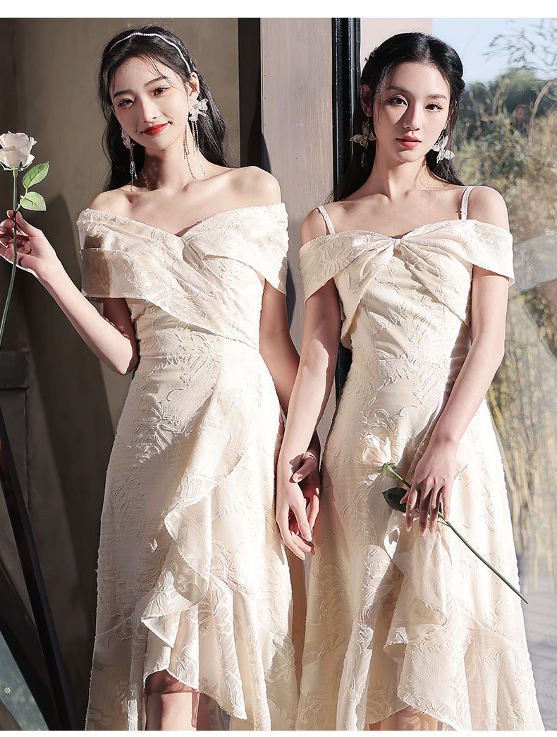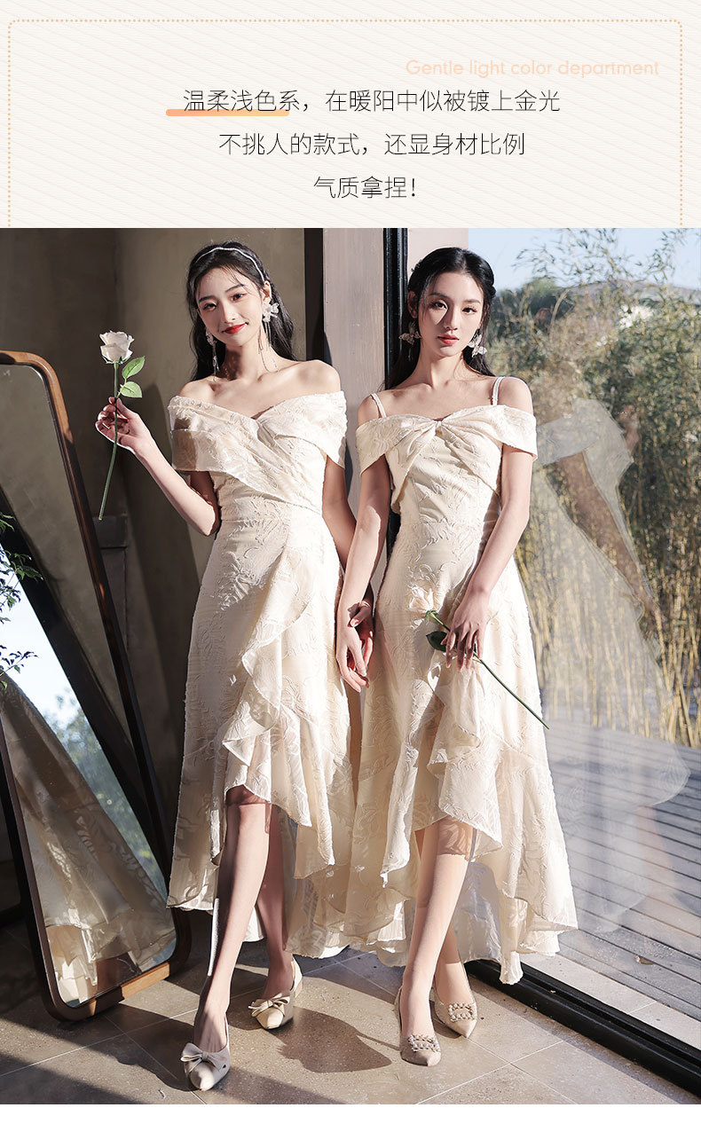 香槟色伴娘服女2022新款春季蕾丝简约姐妹团毕业礼服工厂货源