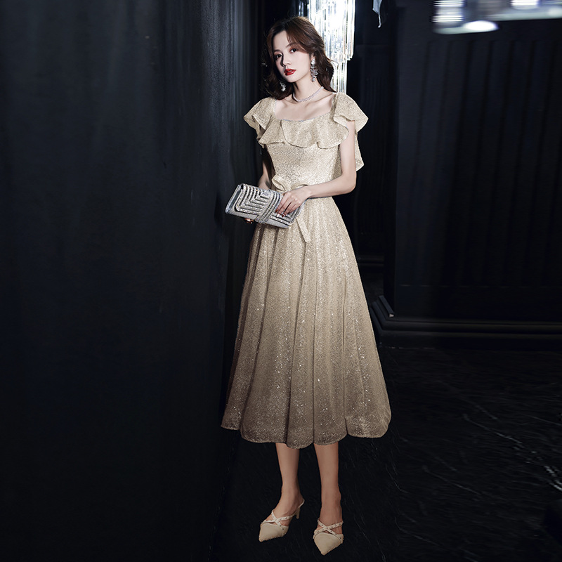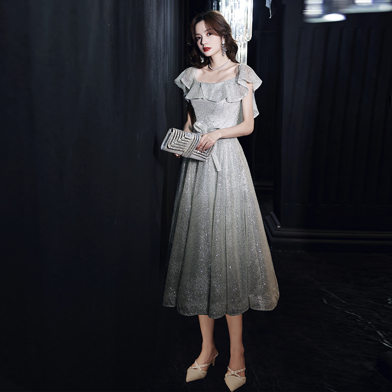 星空晚礼服女宴会仙气质毕业轻奢小众高端银色高级质感裙