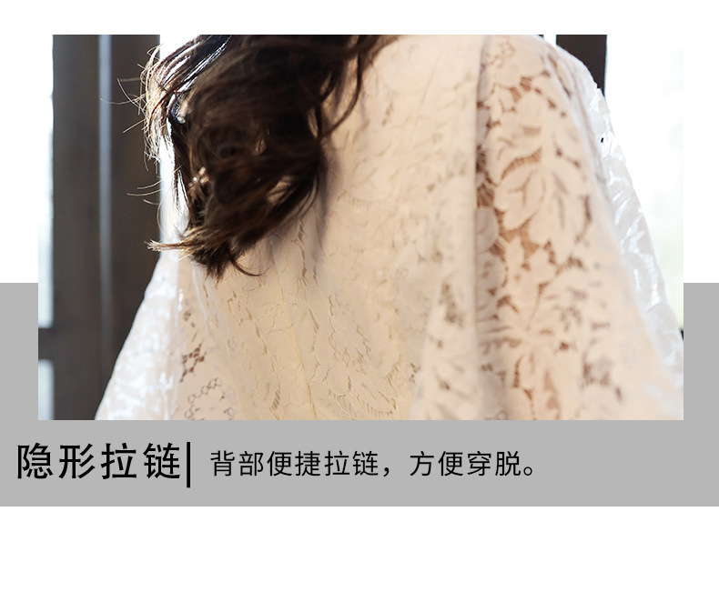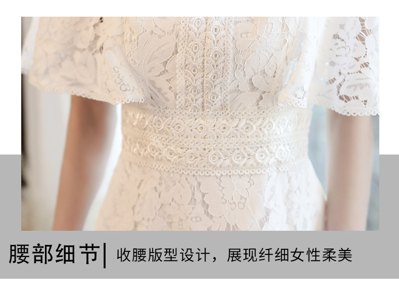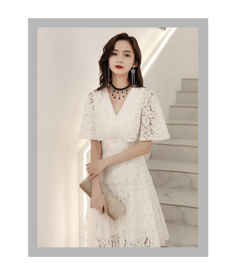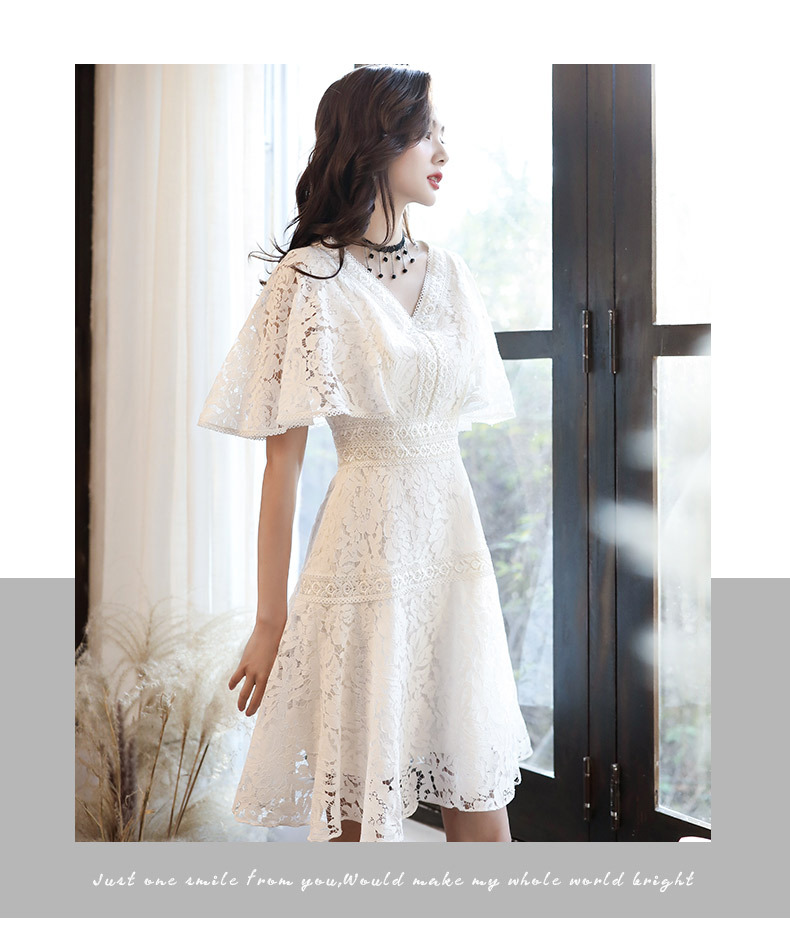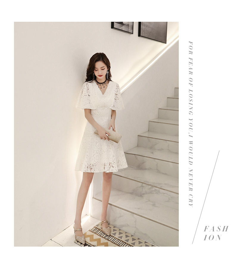 白色v领小礼服裙女夏季新款名媛收腰学生毕业派对蕾丝中裙连衣裙
