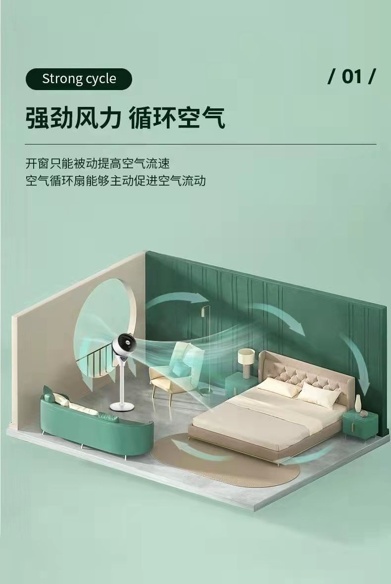 厂家批发直销空气循环扇立式静音电风扇家用宿舍可摇头台式落地扇