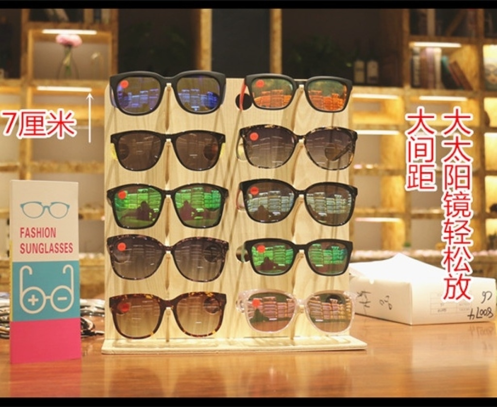 太阳眼镜墨镜展示货架木纹木质光学近视陈列道具展会便携眼睛架子
