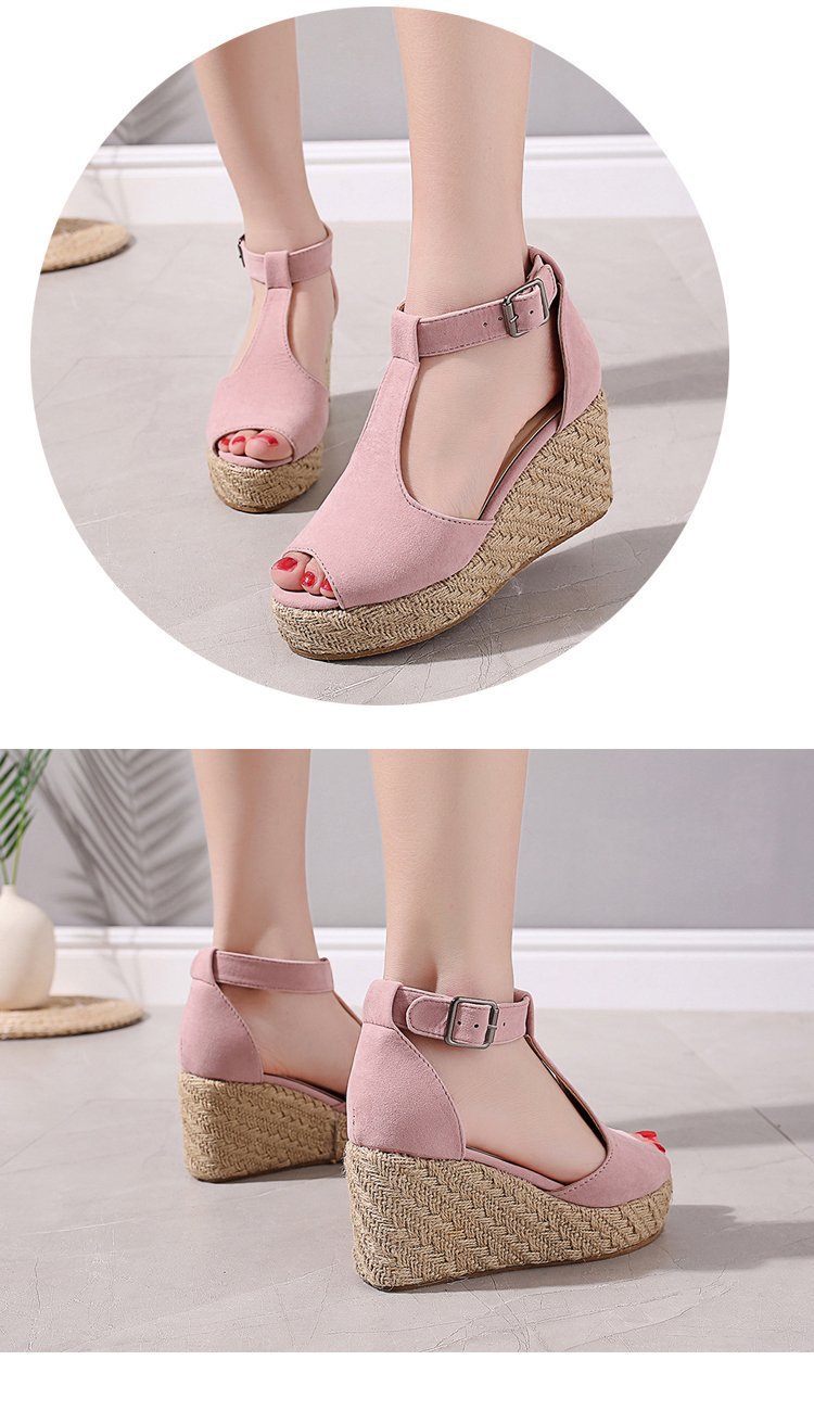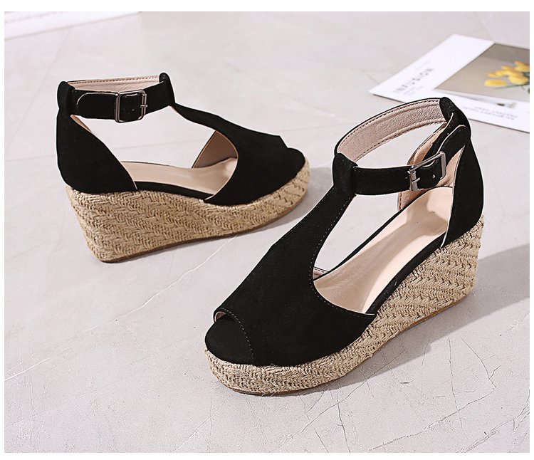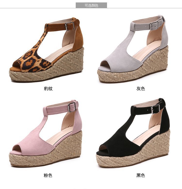 外贸大码坡跟凉鞋女夏鱼嘴鞋高跟防水台厚底松糕鞋批发
