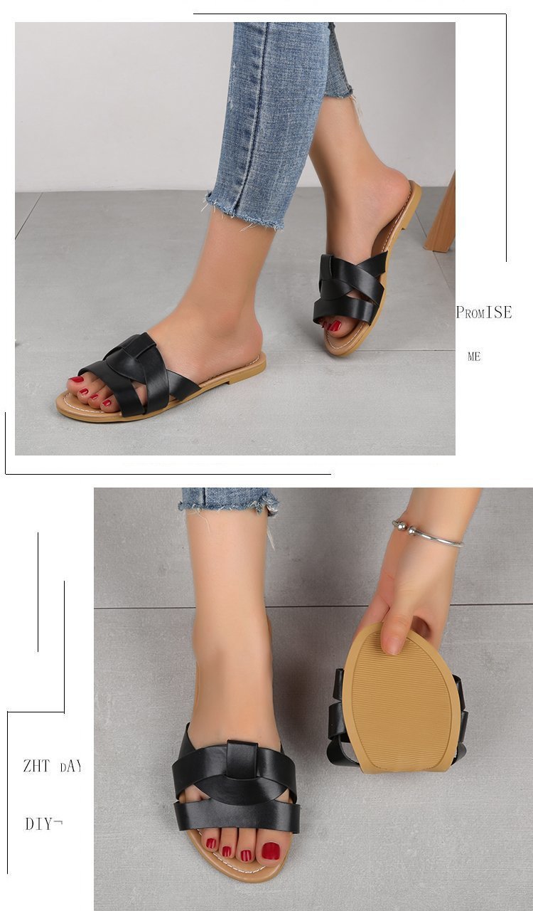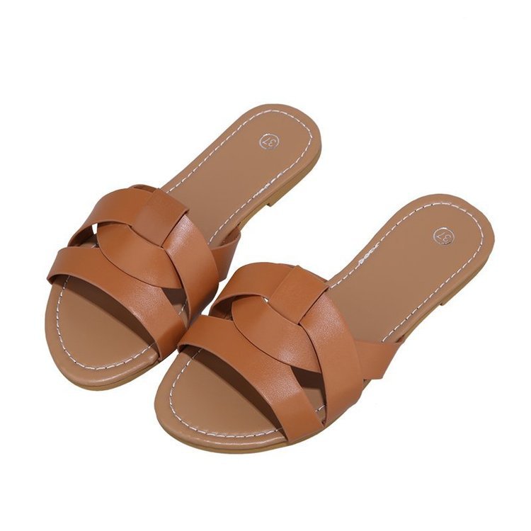 外贸大码凉拖女2020夏新款网红跨境地摊货源平底女士凉拖鞋厂家