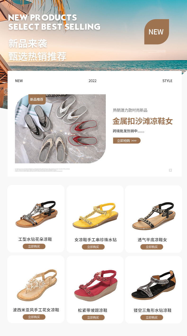 速卖通新款女式坡跟凉鞋钻珠饰品时尚凉鞋女外贸跨境大码凉鞋