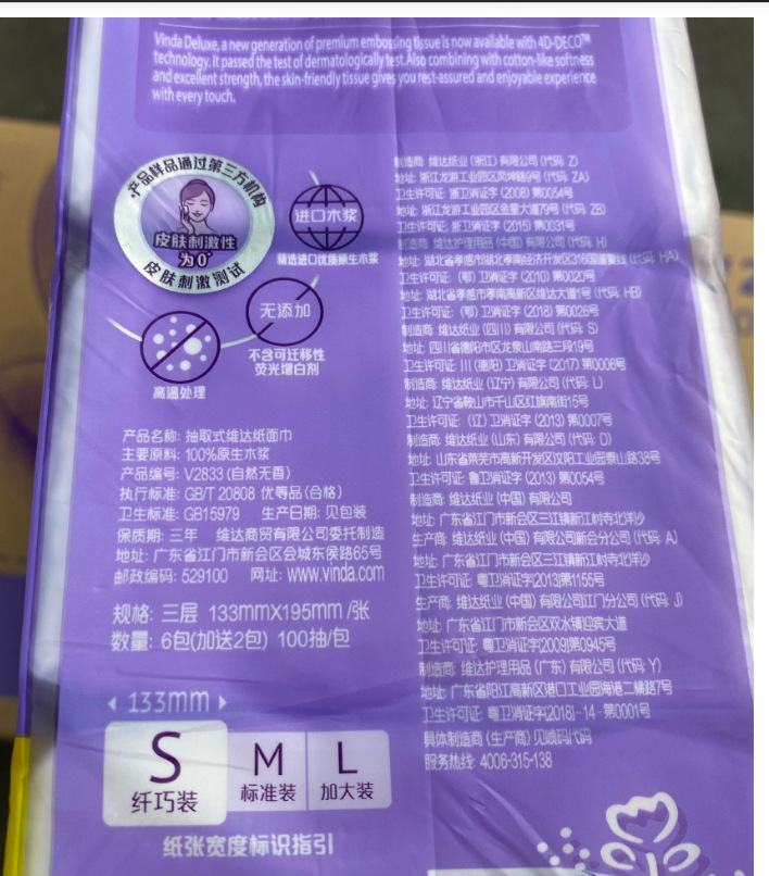 维达抽纸立体美压花面巾纸3层100抽8包无香餐巾纸家用装卫生纸巾