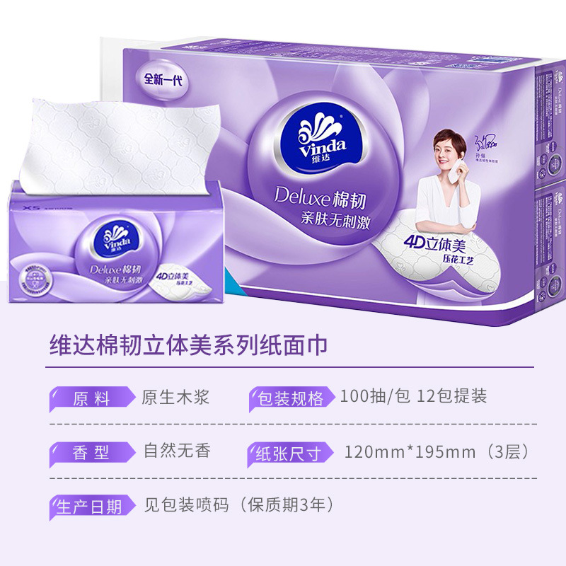 维达抽纸12包立体美棉韧家庭实惠装餐巾纸卫生纸批发纸巾代发