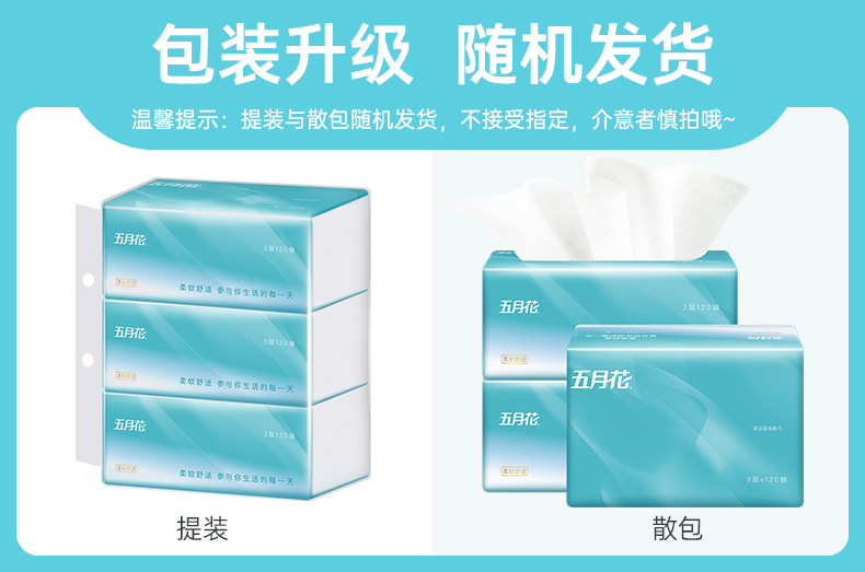 五月花纸巾抽纸3层*110抽*6包/提面巾纸卫生纸餐巾纸家用
