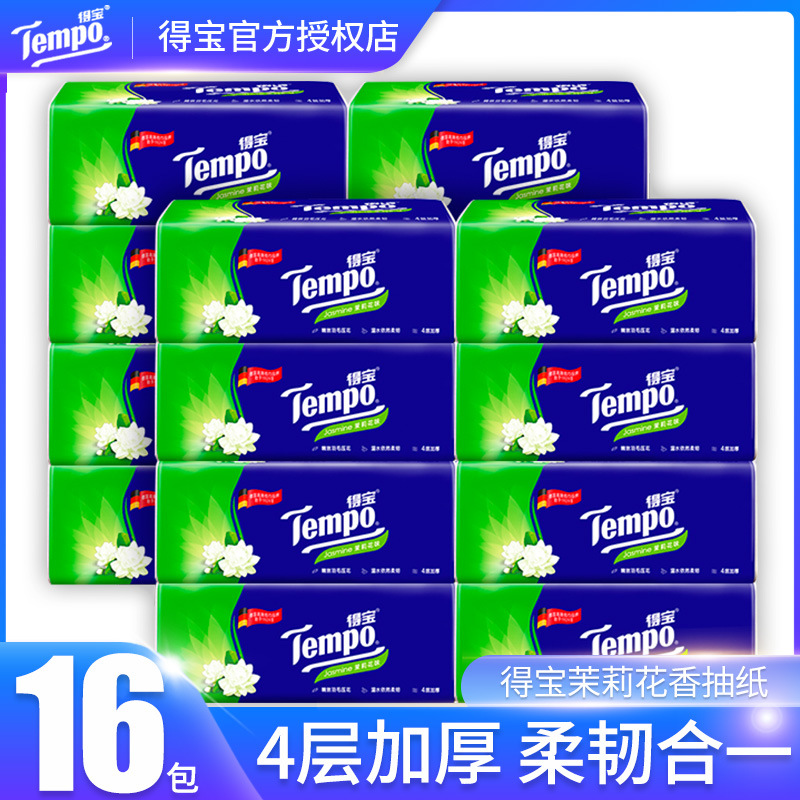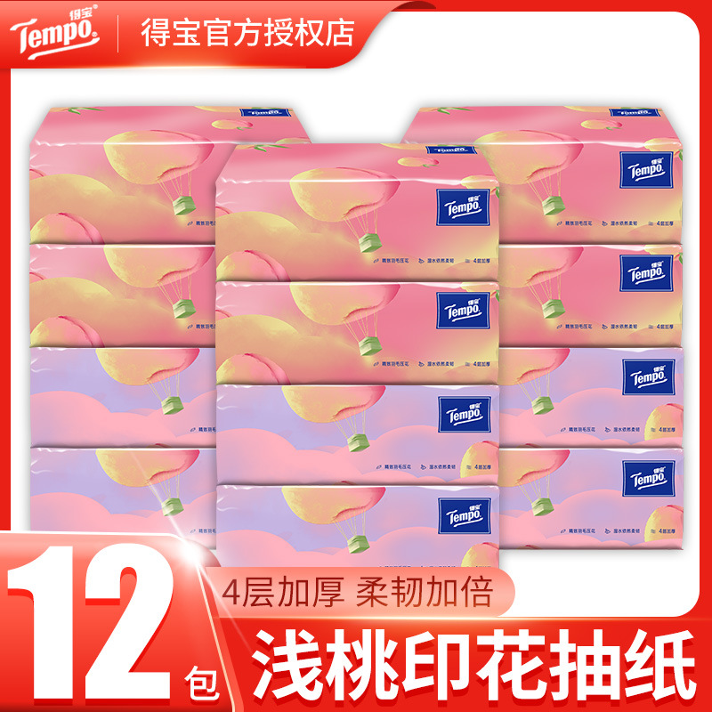 Tempo得宝软抽纸巾4层90抽整箱批家庭装德宝无香抽纸面巾纸餐巾纸