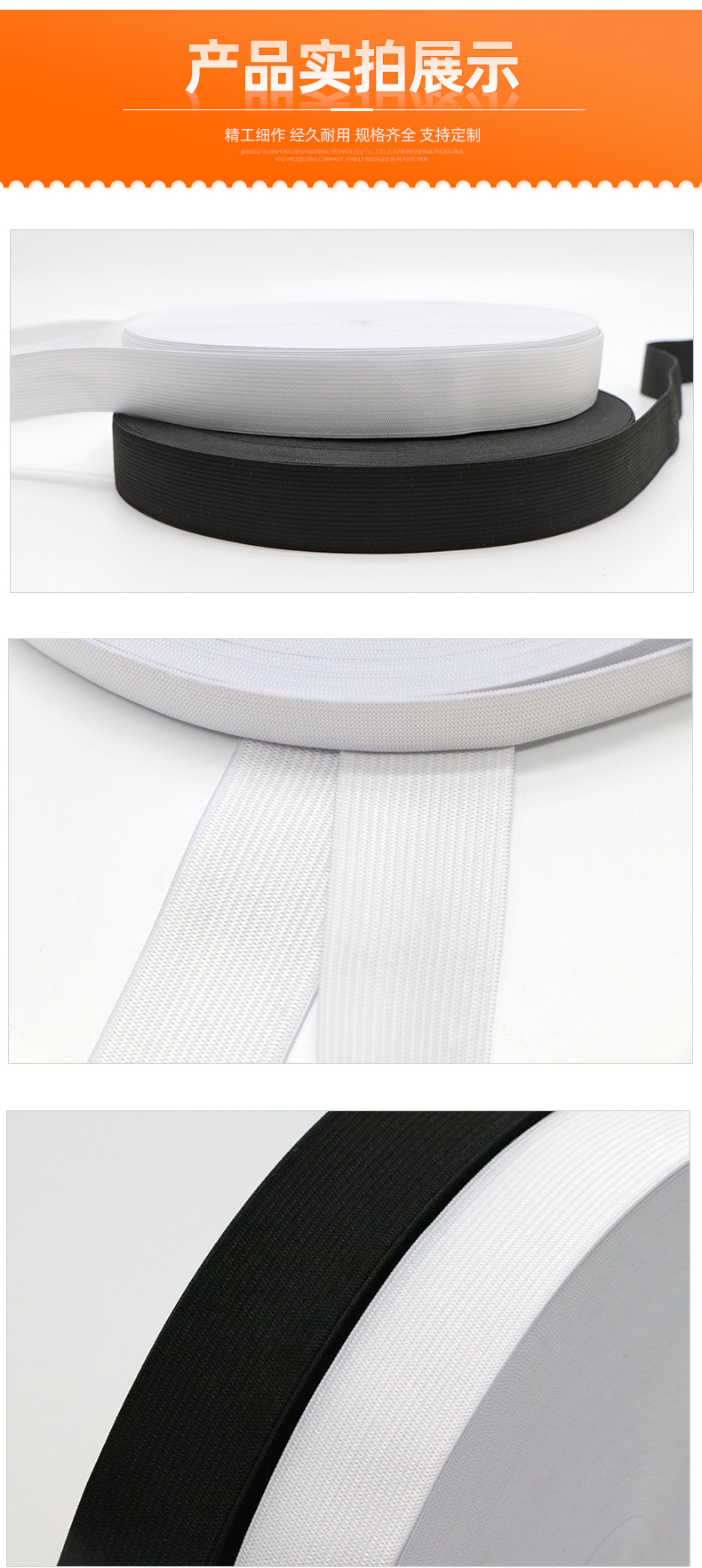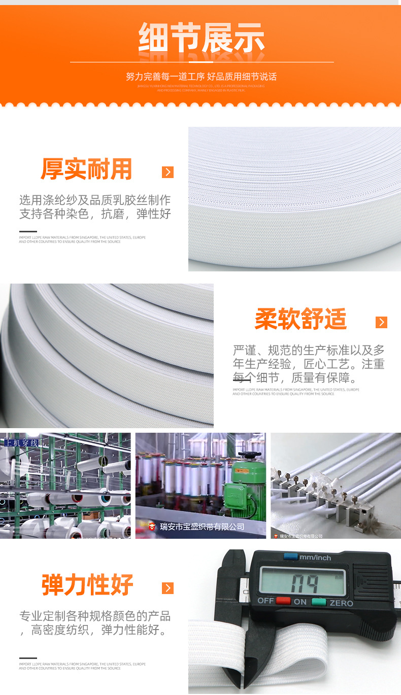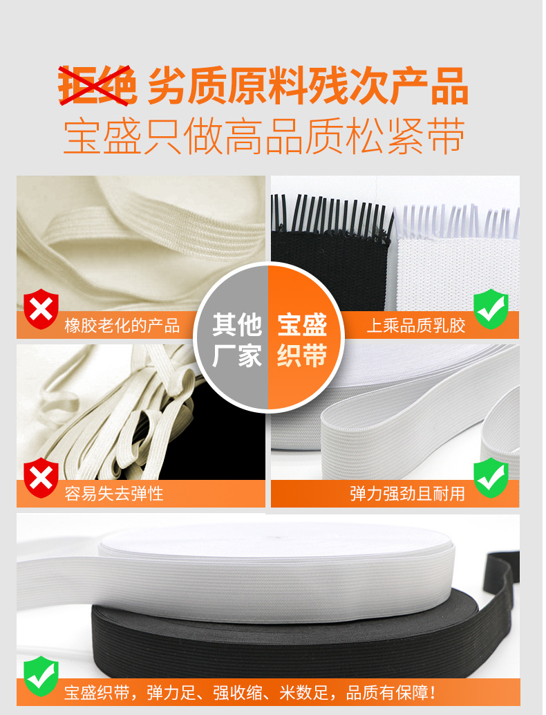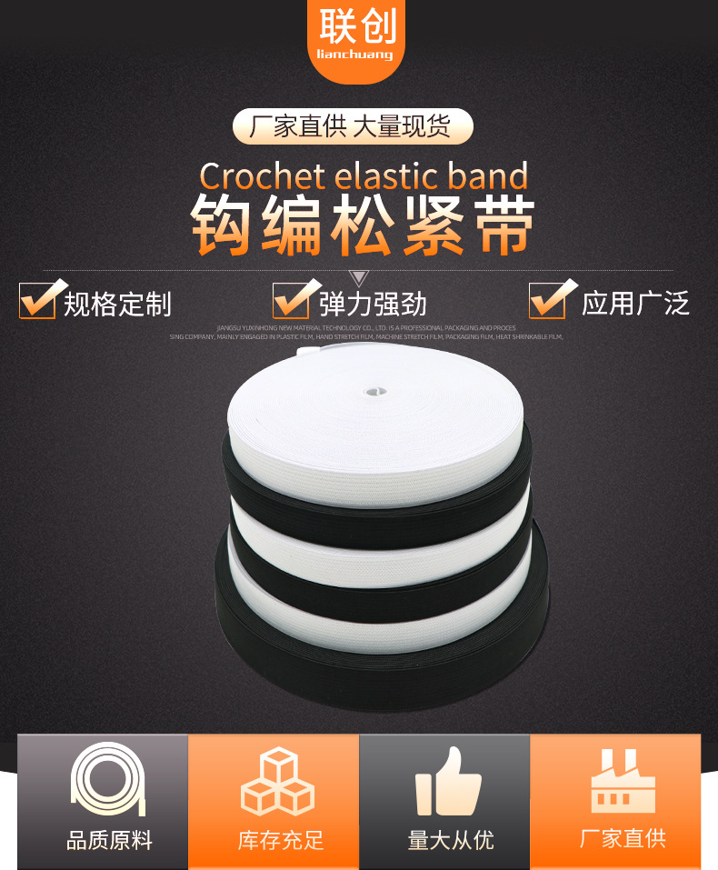 厂家黑白色钩编松紧带 平纹扁高弹橡筋针织裤腰眼罩弹力松紧带