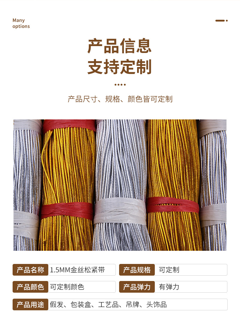 厂家批发织带金丝松紧带1.5MM皮筋金色银色弹力绳服装辅料弹力带