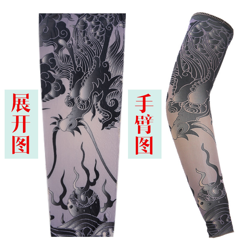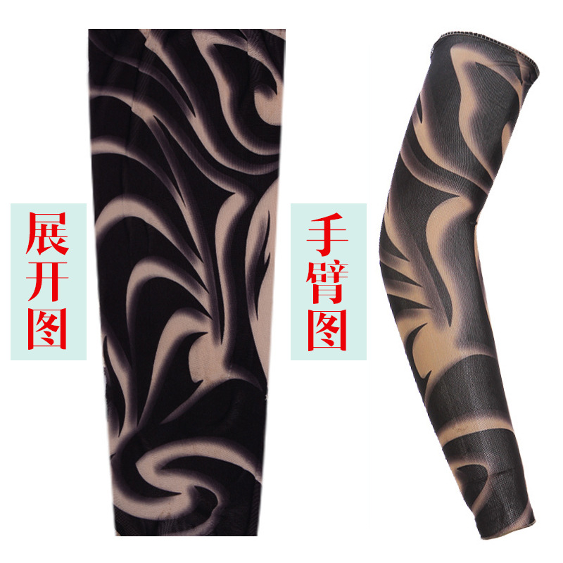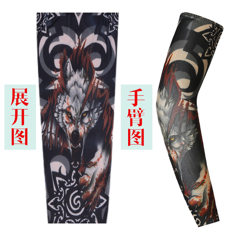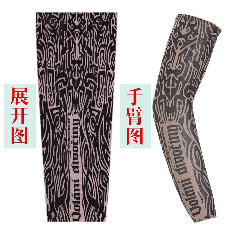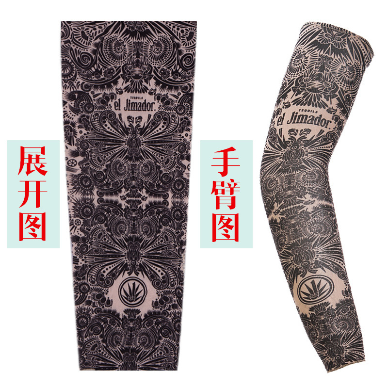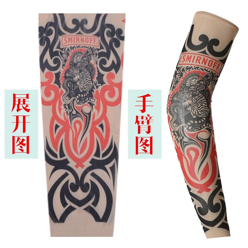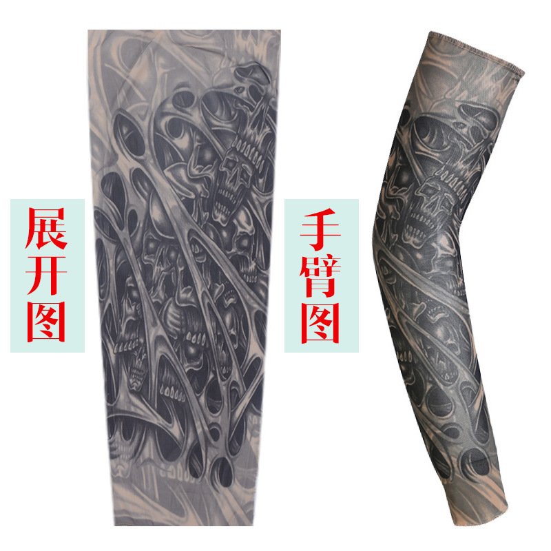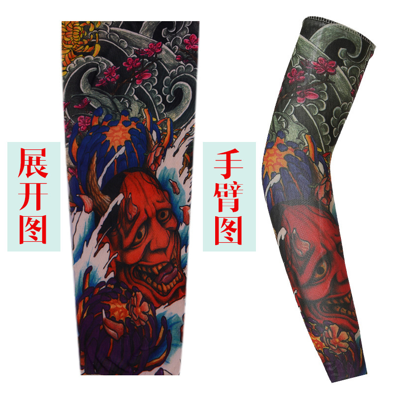 批发户外骑行纹身袖套 刺青手臂套男女有缝冰丝防晒袖 无缝花臂袖
