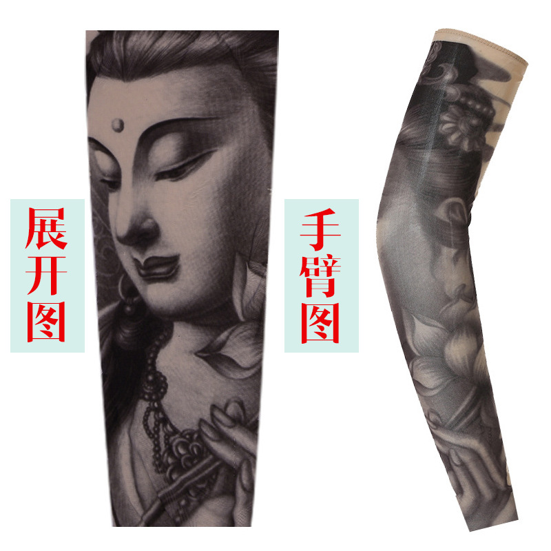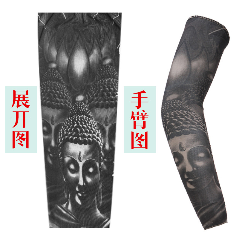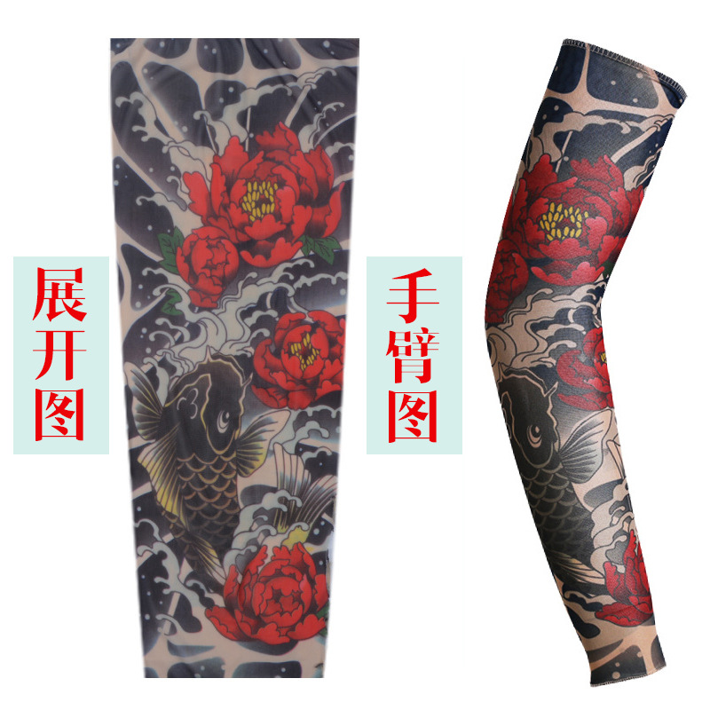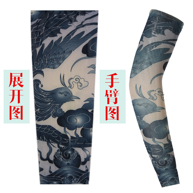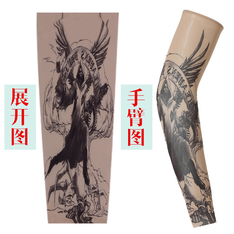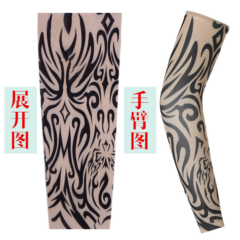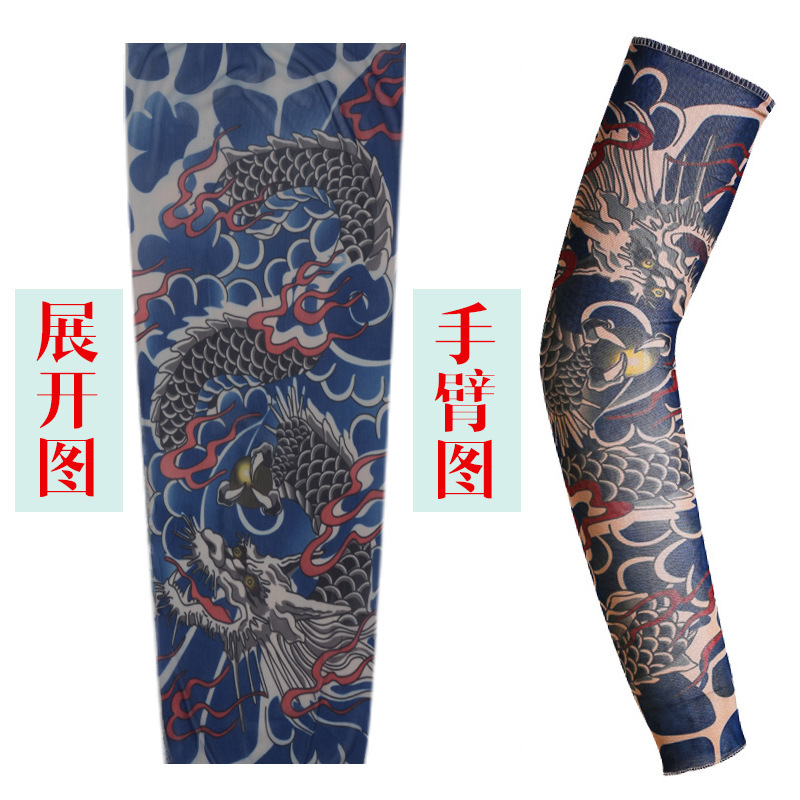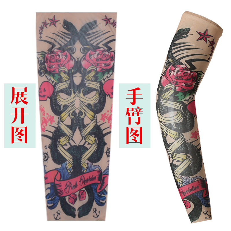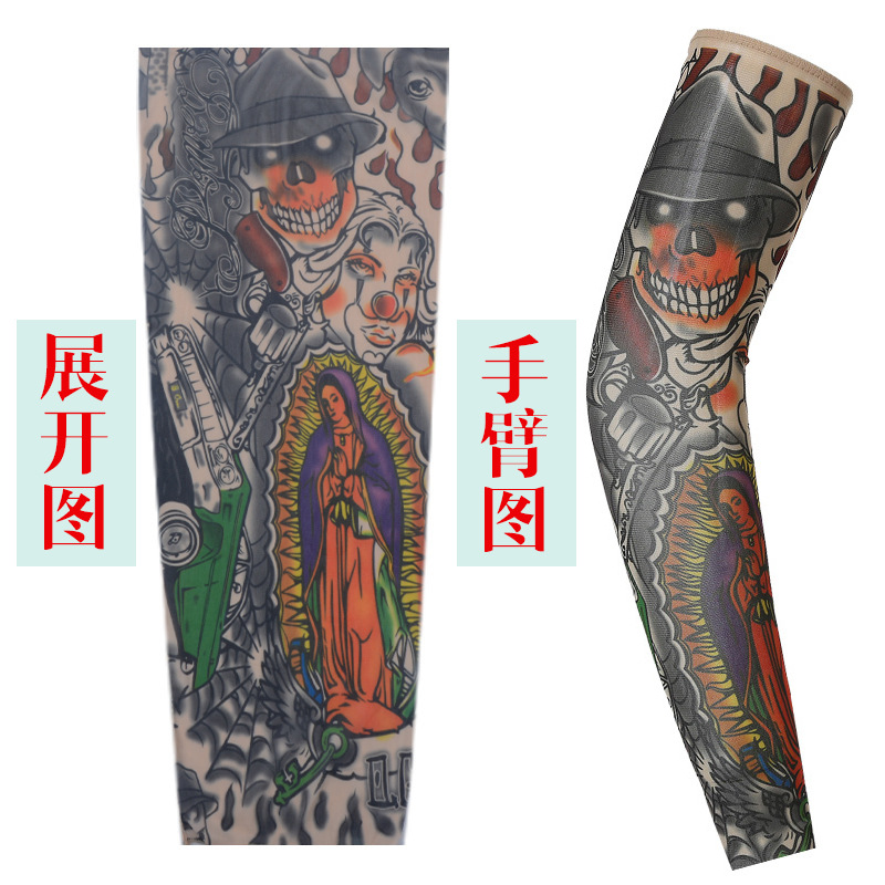 批发户外骑行纹身袖套 刺青手臂套男女有缝冰丝防晒袖 无缝花臂袖