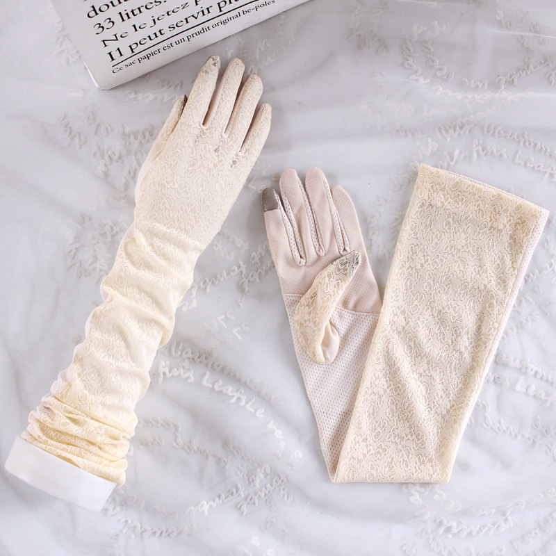 防晒袖套女长款防紫外线夏蕾丝冰丝手套触屏防滑透气骑行开车遮阳