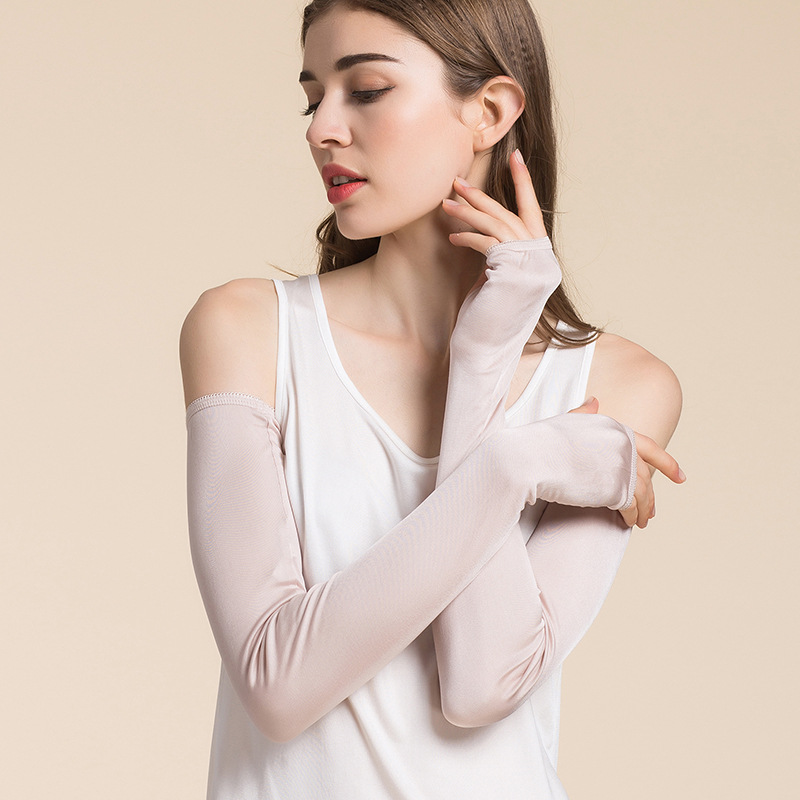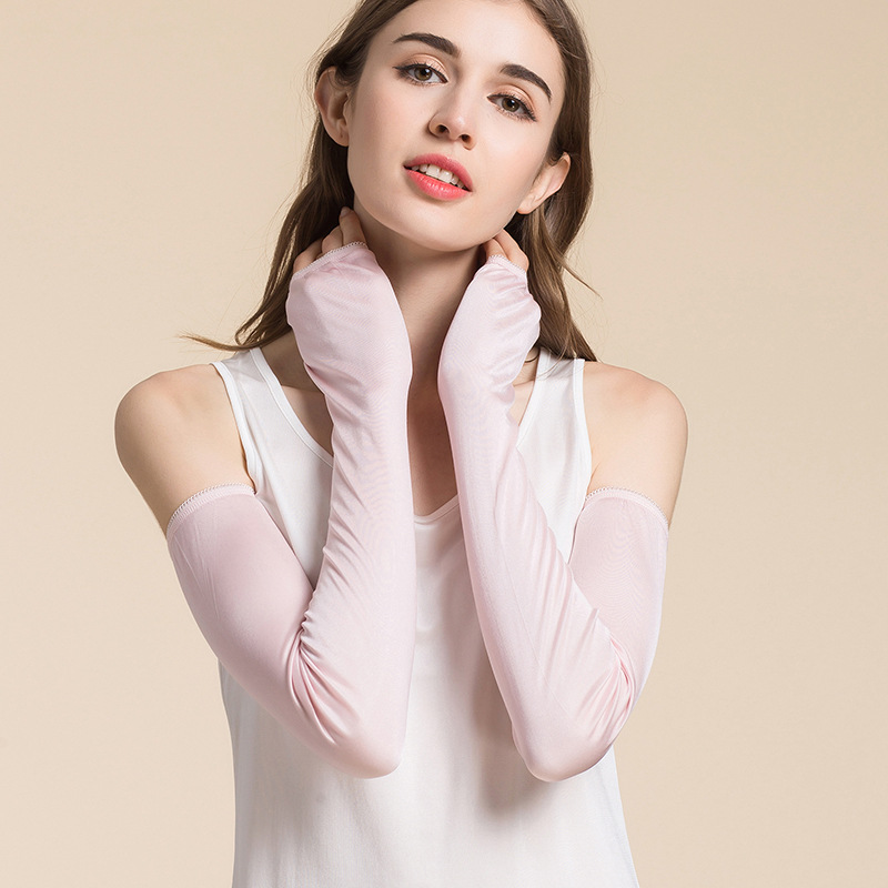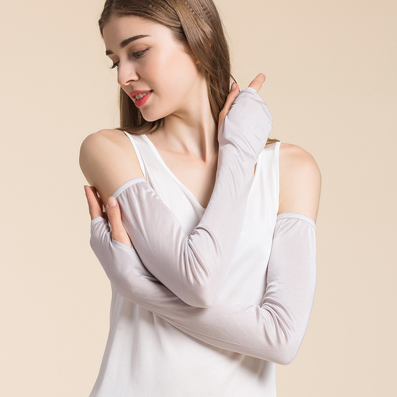 夏季款真丝防晒长袖套女加长遮阳护臂桑蚕丝针织薄款舒适透气手套