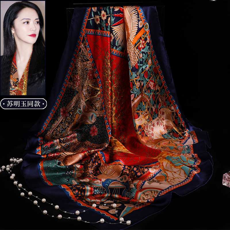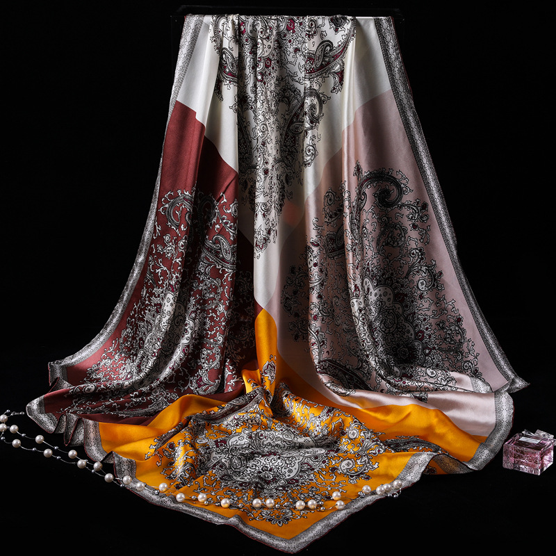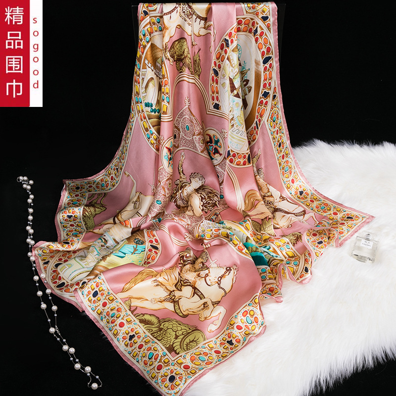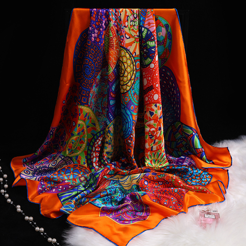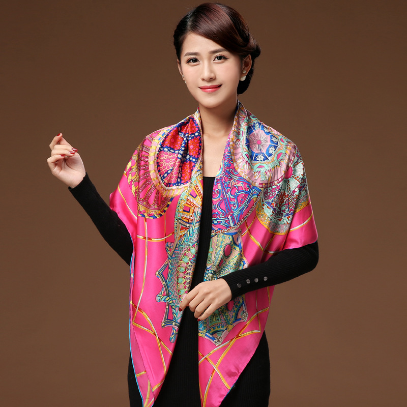 桑蚕丝丝巾百搭春秋装饰110cm大方巾真丝女夏季披肩围巾外搭两用