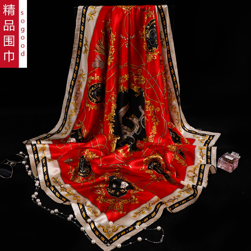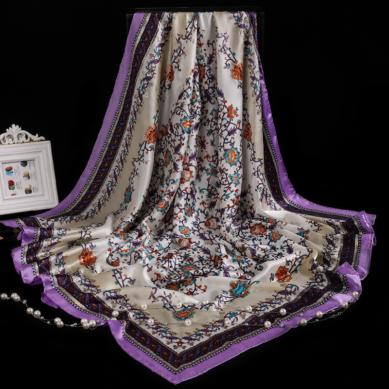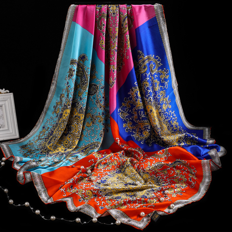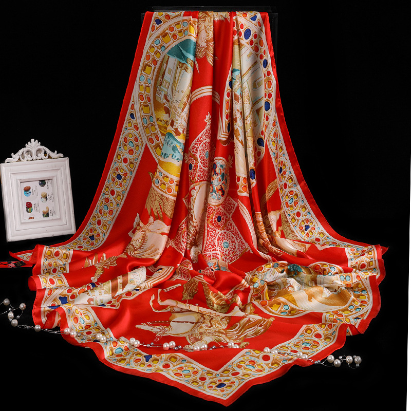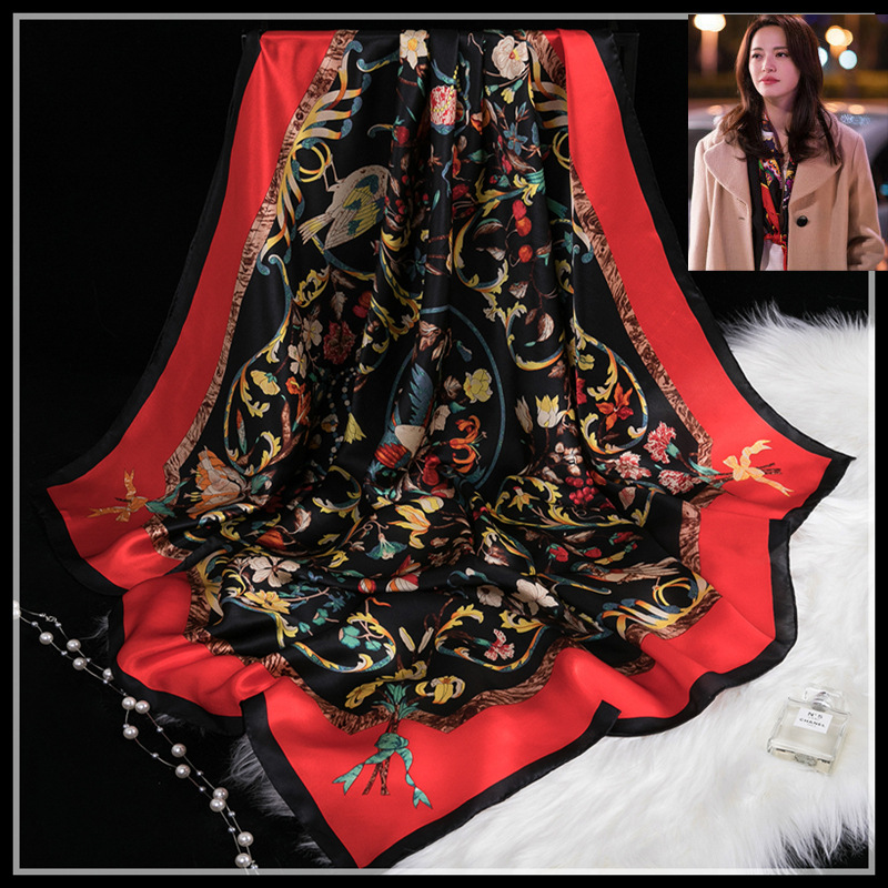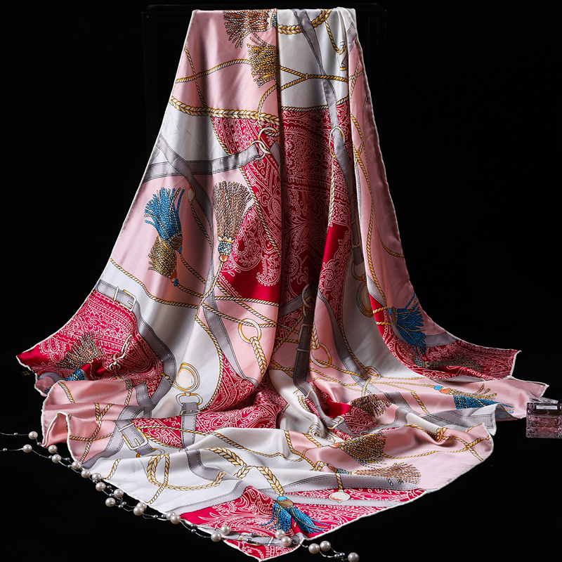 桑蚕丝丝巾百搭春秋装饰110cm大方巾真丝女夏季披肩围巾外搭两用