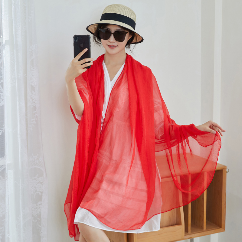 雪纺丝巾批发围巾女晚会舞蹈道具纯色长款防晒披肩红色纱巾薄款