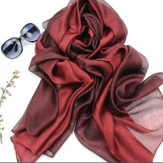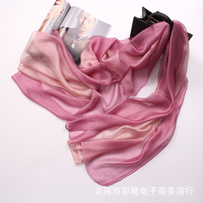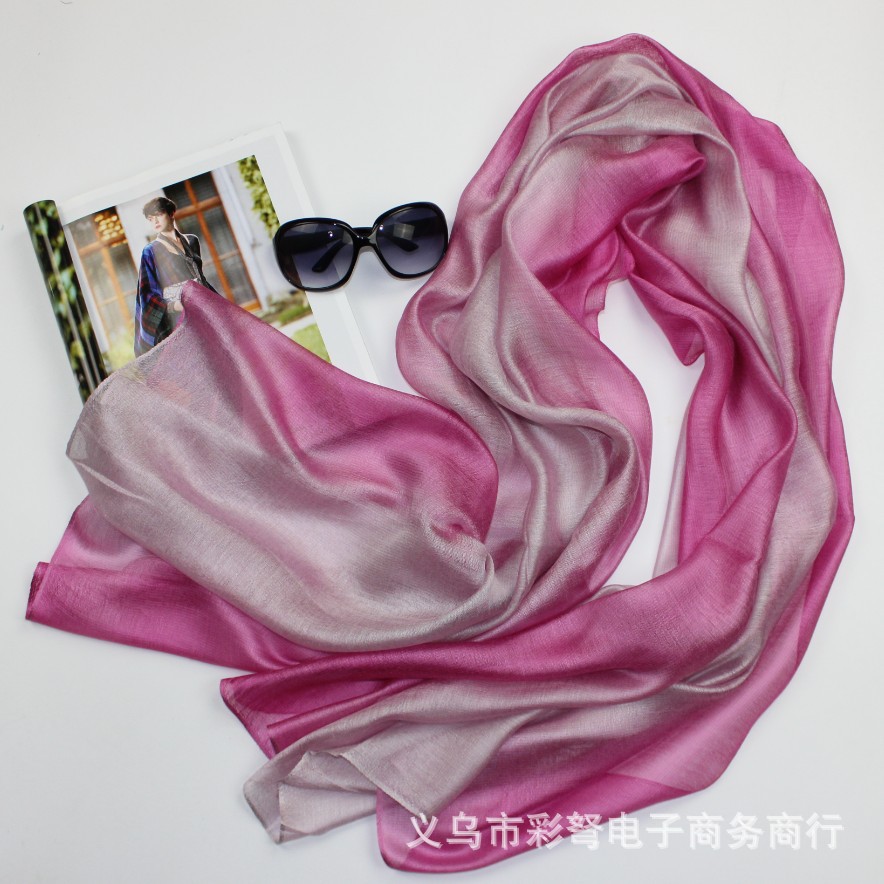 秋冬季新款桑蚕丝渐变色丝巾真丝棉麻长款围巾披肩两用女春秋纱巾