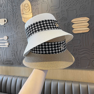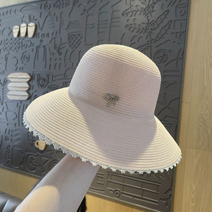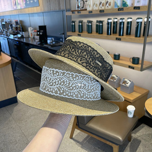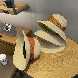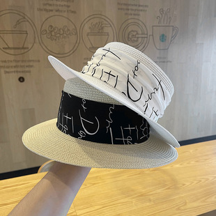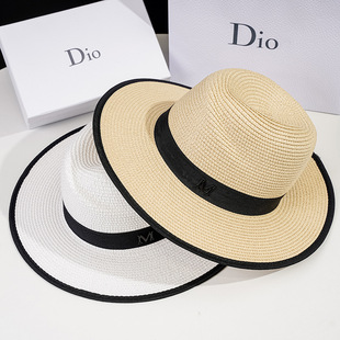夏季帽子平顶草帽女遮阳帽拉菲草帽沙滩度假防晒太阳帽渔夫帽网红