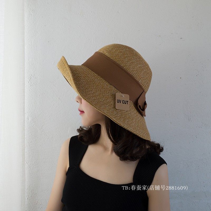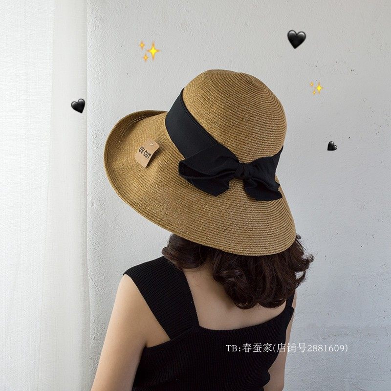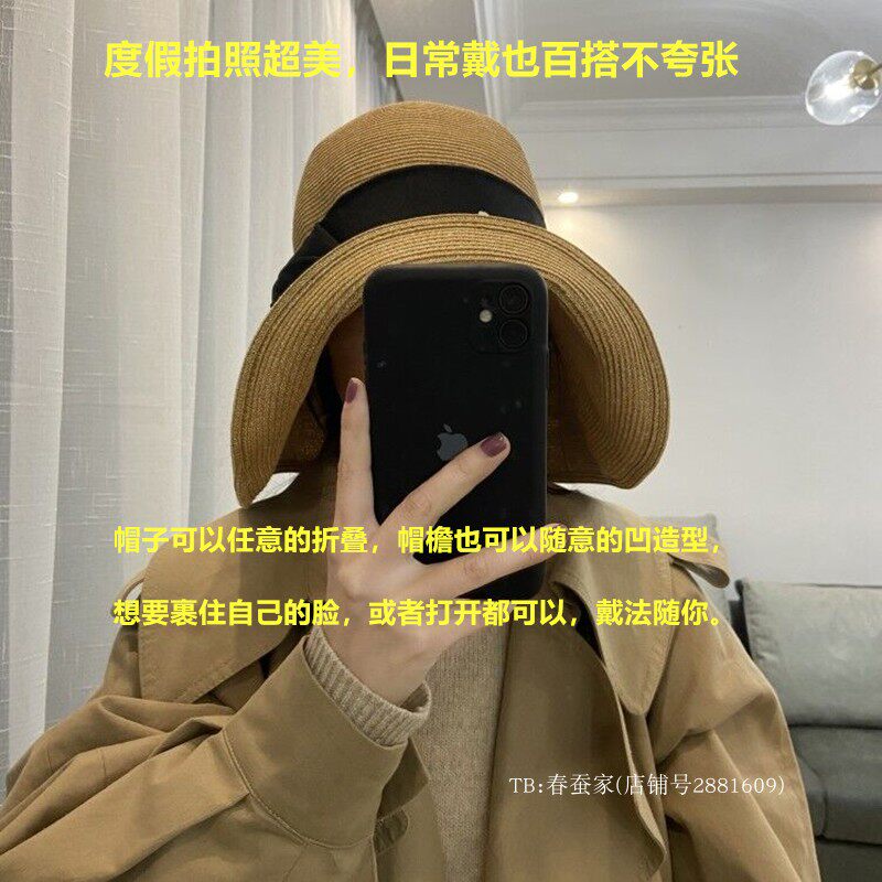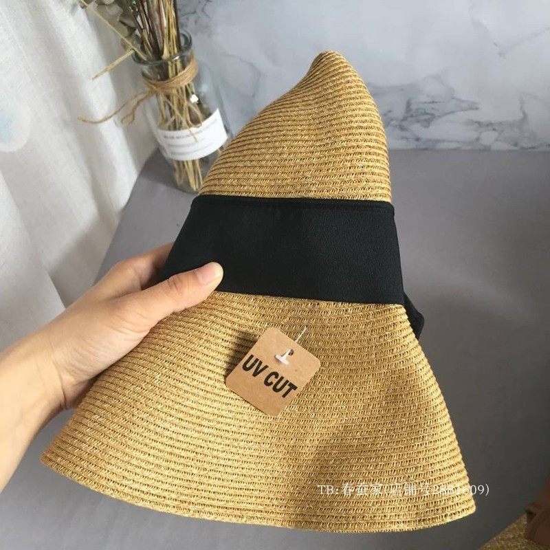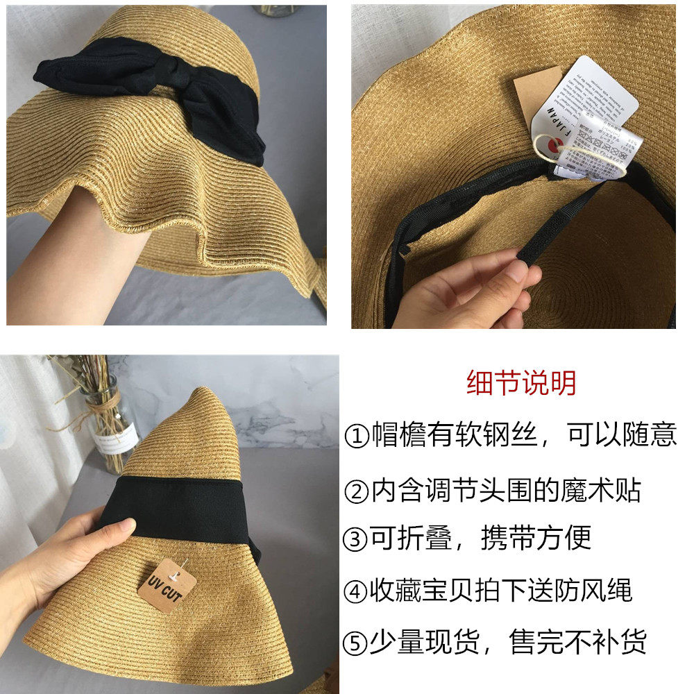 日本出口UVcut草帽女孙俪同款可折叠防晒帽子夏天沙滩遮阳太阳帽