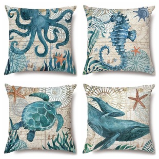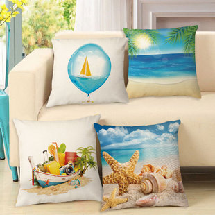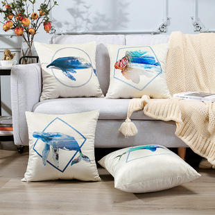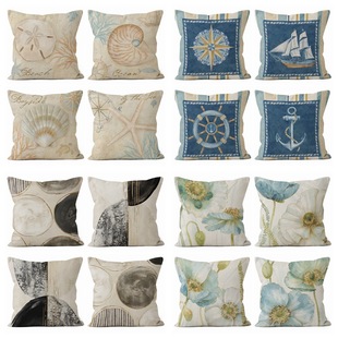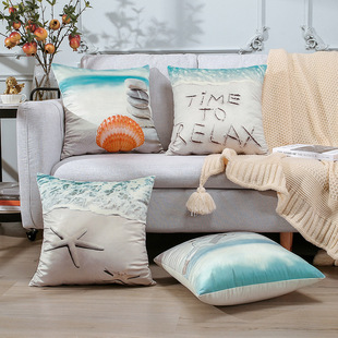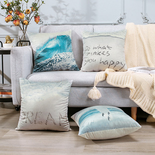 沙滩海浪冲浪系列天鹅绒抱枕套蓝色海洋系客厅沙发靠枕套北欧风