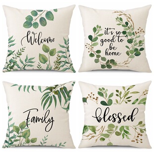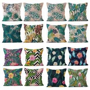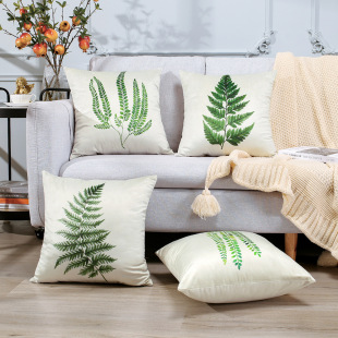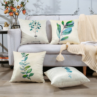 亚马逊新款绿色树叶系列抱枕套居天鹅绒抱简约客厅沙发靠枕套北欧